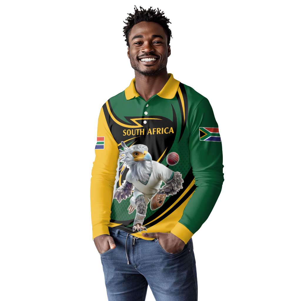 Secretary Bird South Africa Cricket Custom Long Sleeve Polo Shirt Unique Pattern