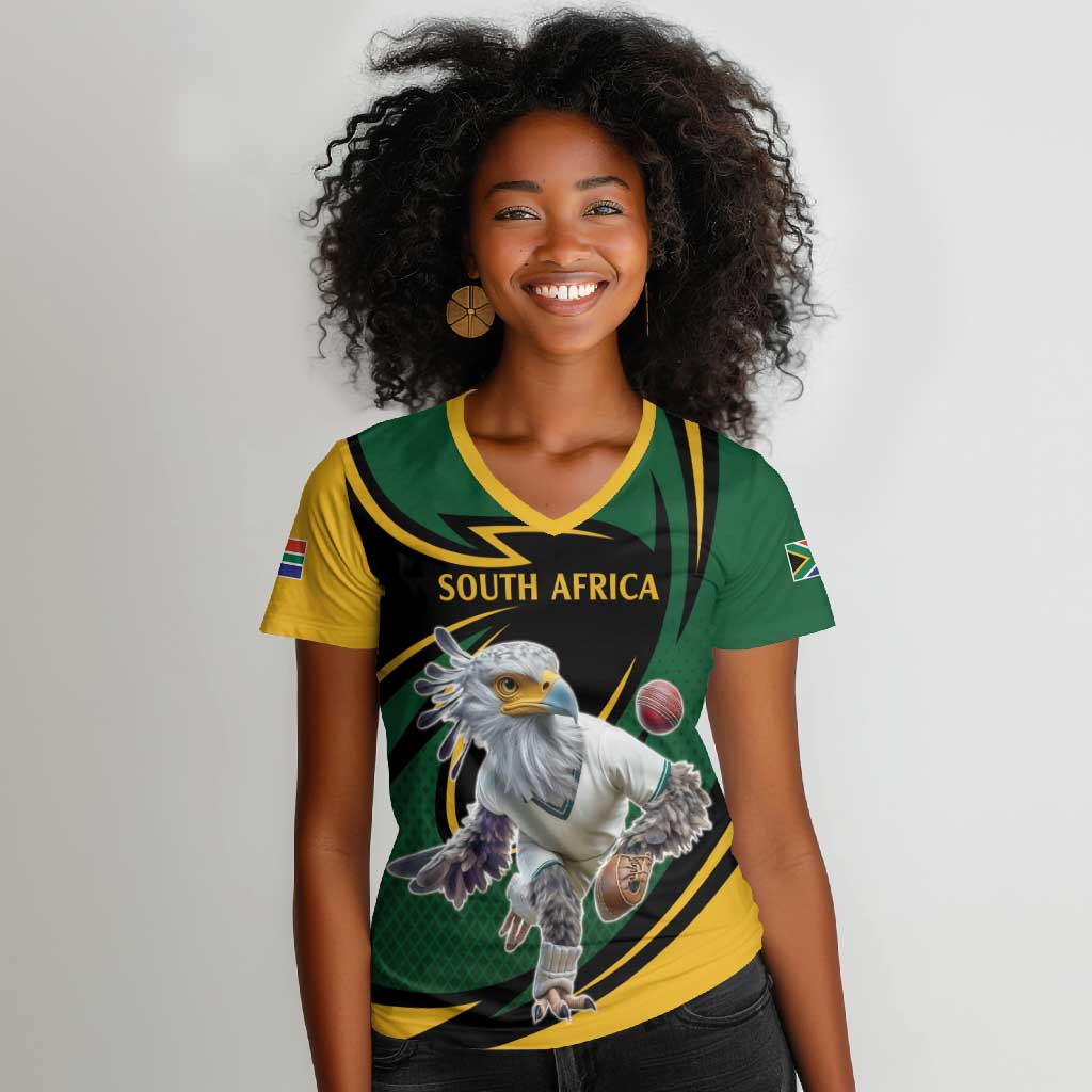 Secretary Bird South Africa Cricket Custom Women V-Neck T-Shirt Unique Pattern