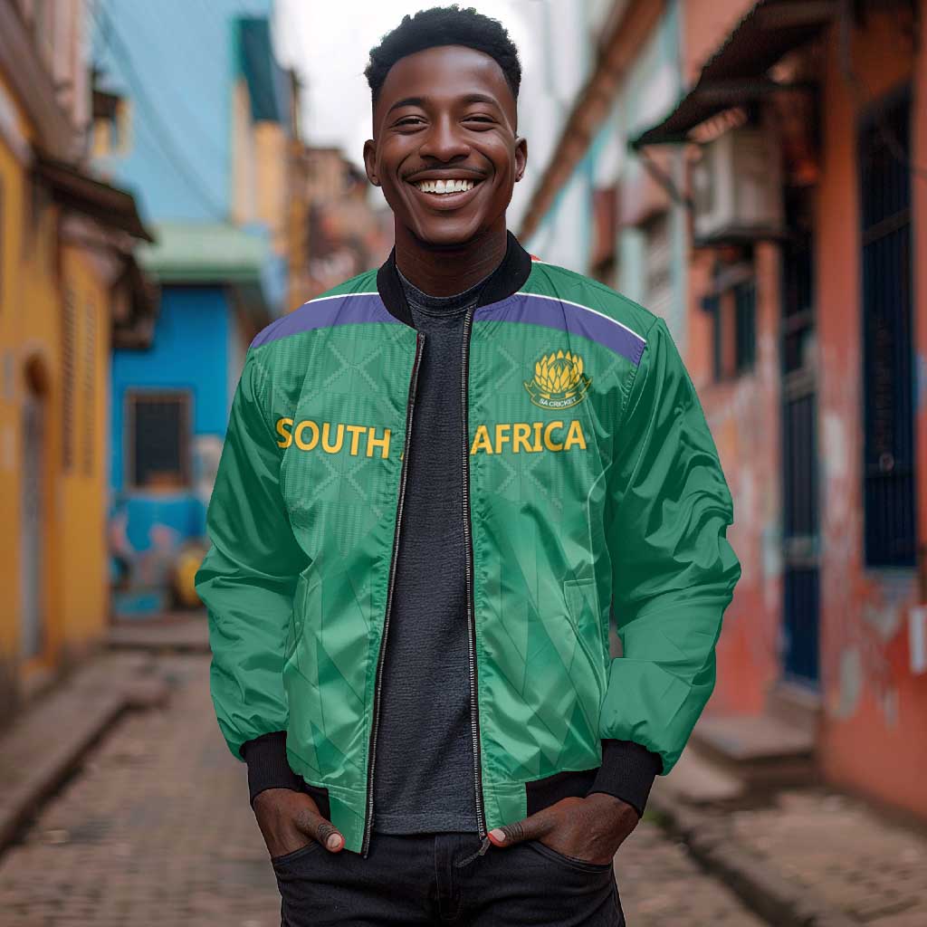 South Africa Cricket Custom Bomber Jacket African King Proteas Green