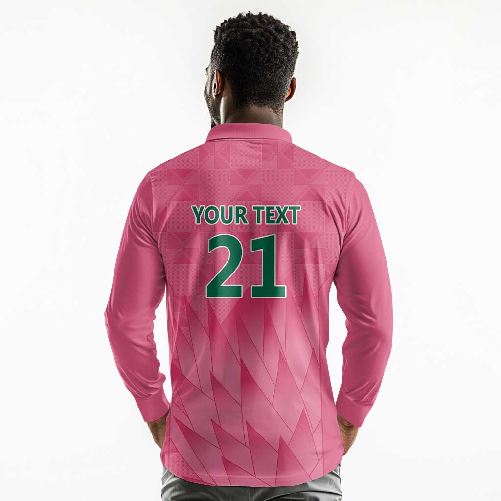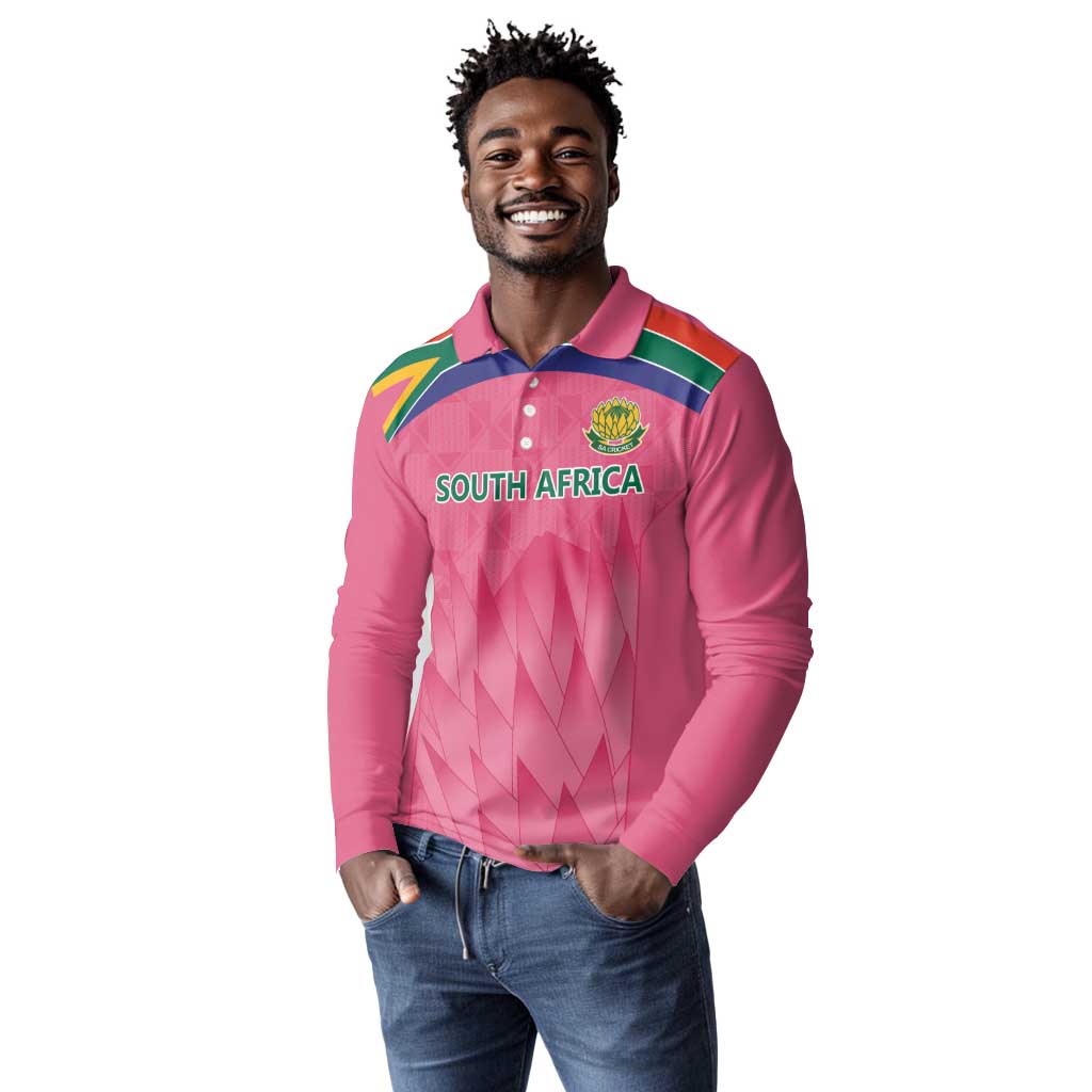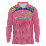 South Africa Cricket Custom Long Sleeve Polo Shirt African King Proteas Pink