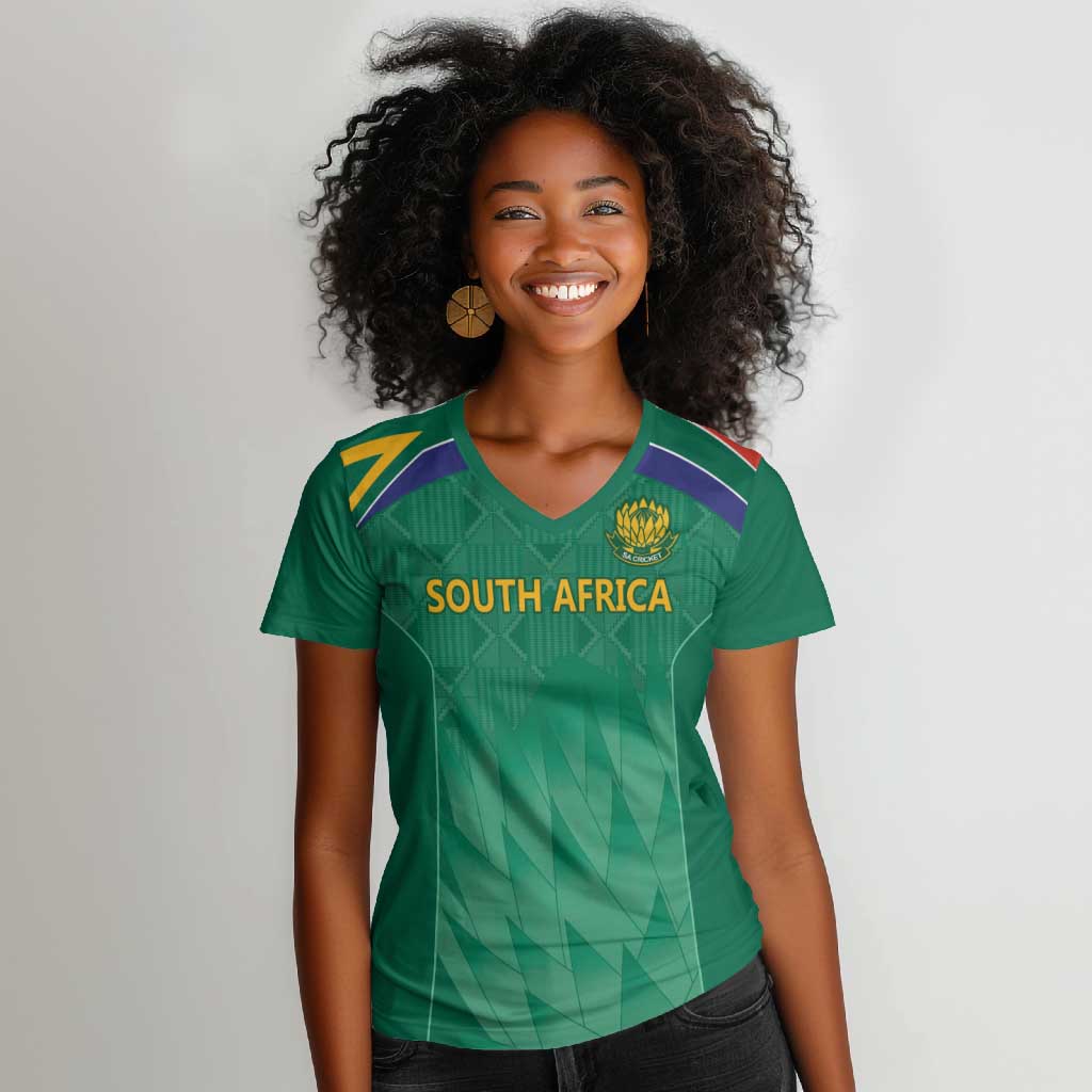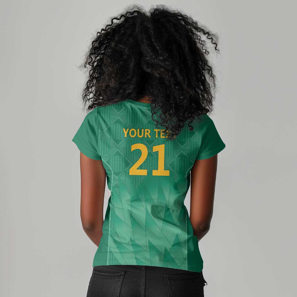South Africa Cricket Custom Women V-Neck T-Shirt African King Proteas Green