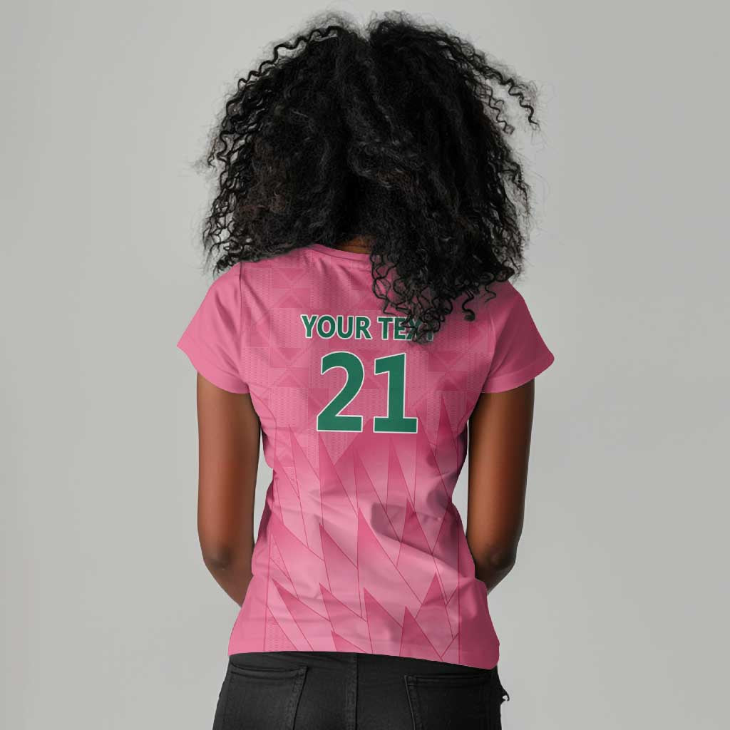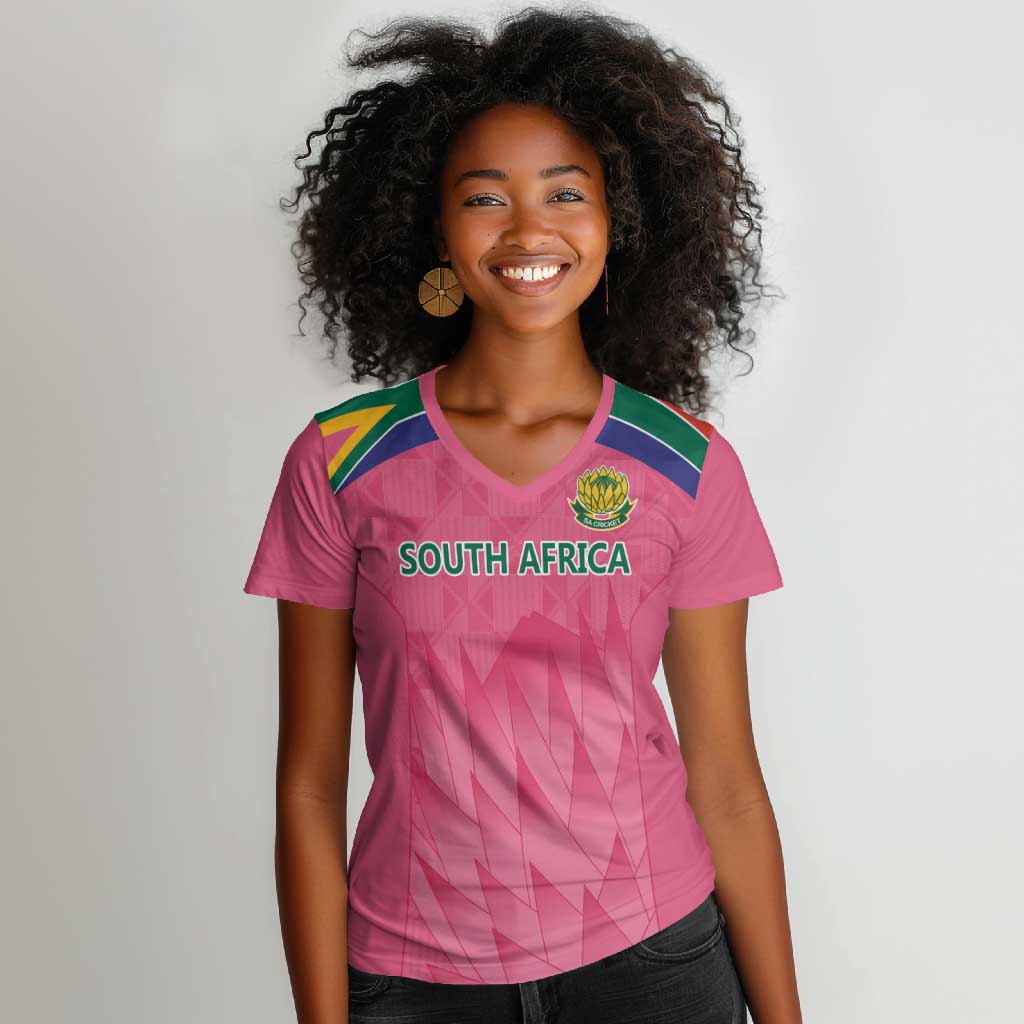 South Africa Cricket Custom Women V-Neck T-Shirt African King Proteas Pink