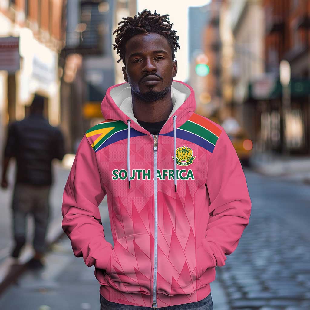 South Africa Cricket Custom Zip Hoodie African King Proteas Pink