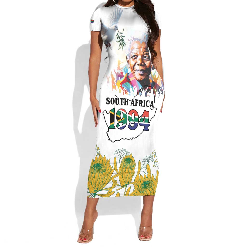 Afro South Africa Freedom Day Short Sleeve Bodycon Dress Nelson Mandela
