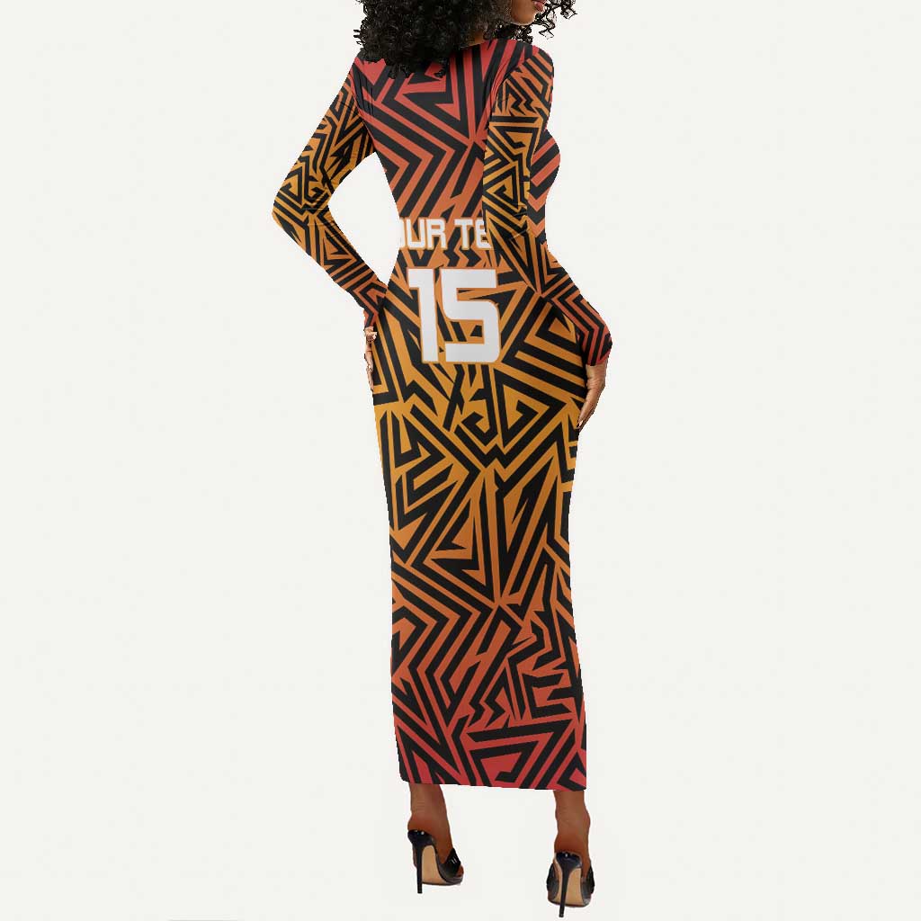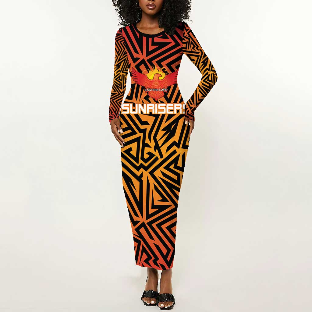 Custom Afro South Africa Cricket Long Sleeve Bodycon Dress Eastern Cape - Go Sunrisers
