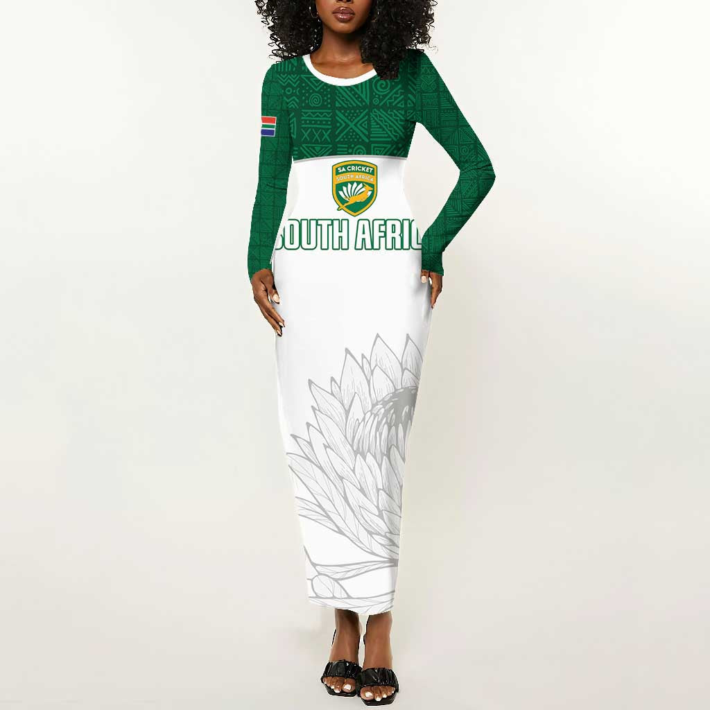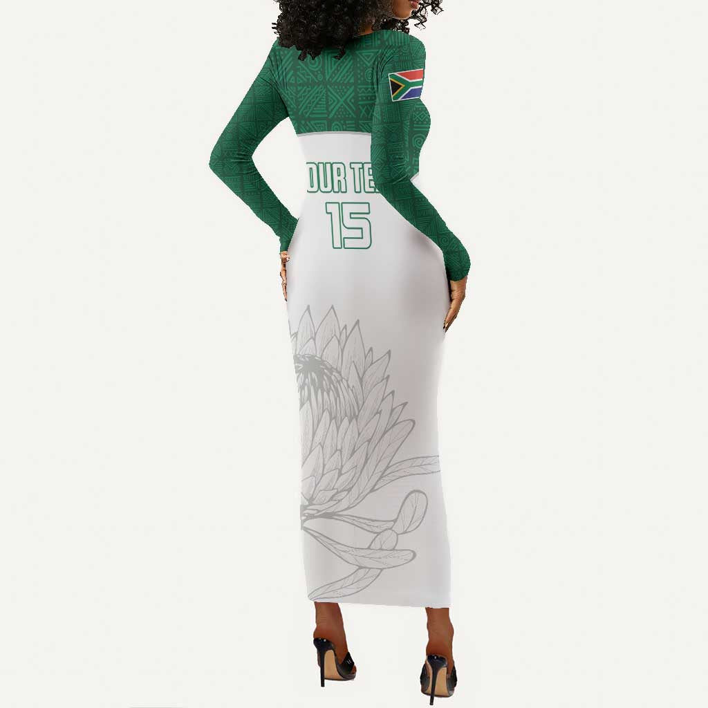 Custom Afro South Africa Cricket Long Sleeve Bodycon Dress Go Proteas - African Pattern