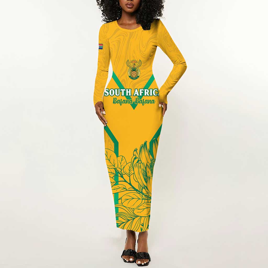Custom Afro South Africa Soccer Long Sleeve Bodycon Dress Go Champions