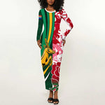Custom South Africa and England Rugby Long Sleeve Bodycon Dress - The Red Rose with Protea Pattern