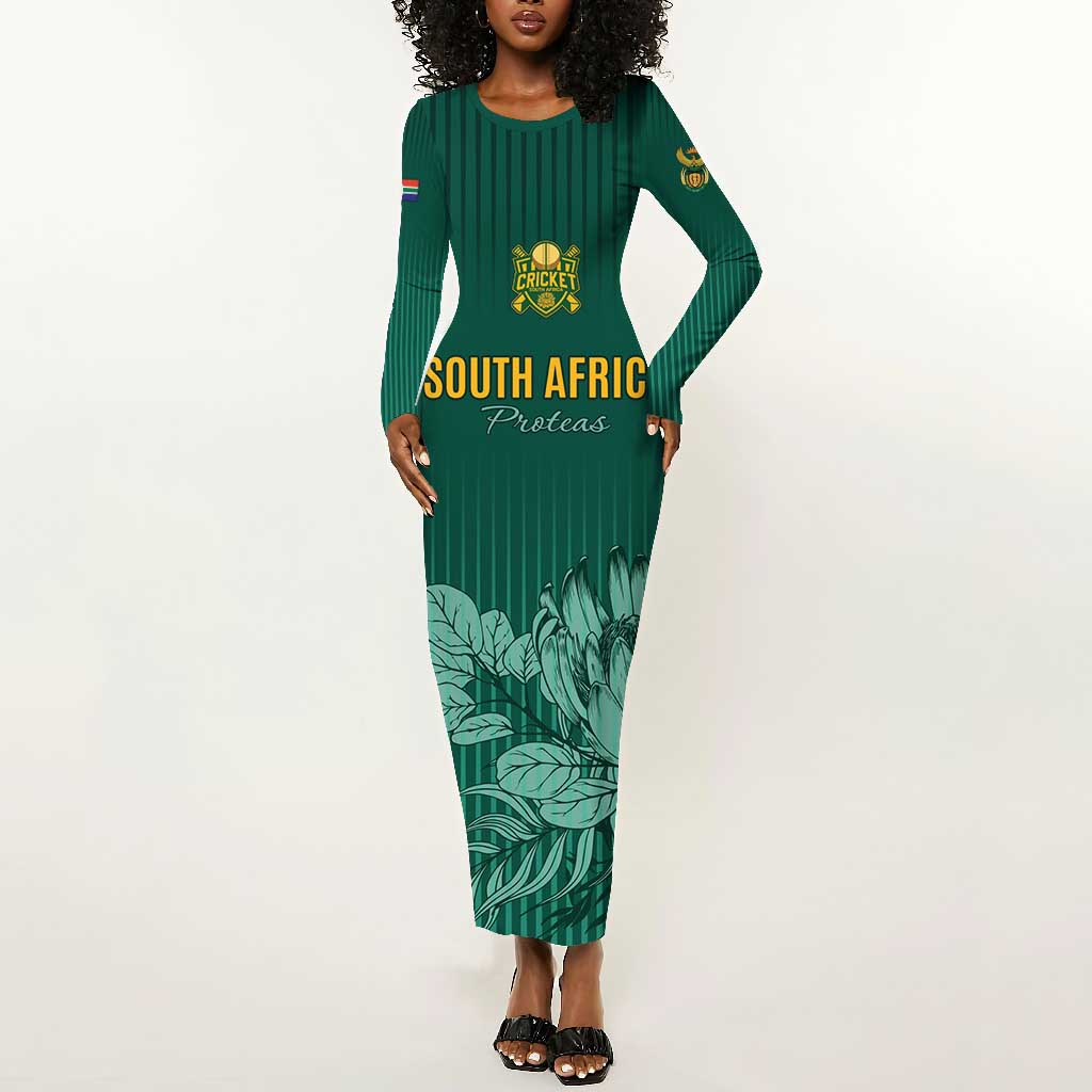 Custom South Africa Cricket Long Sleeve Bodycon Dress Come On Proteas