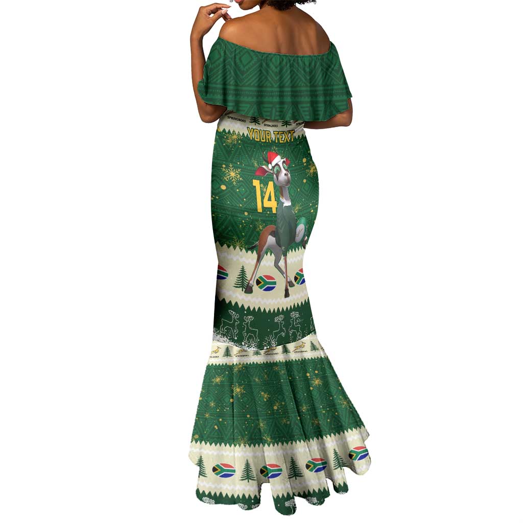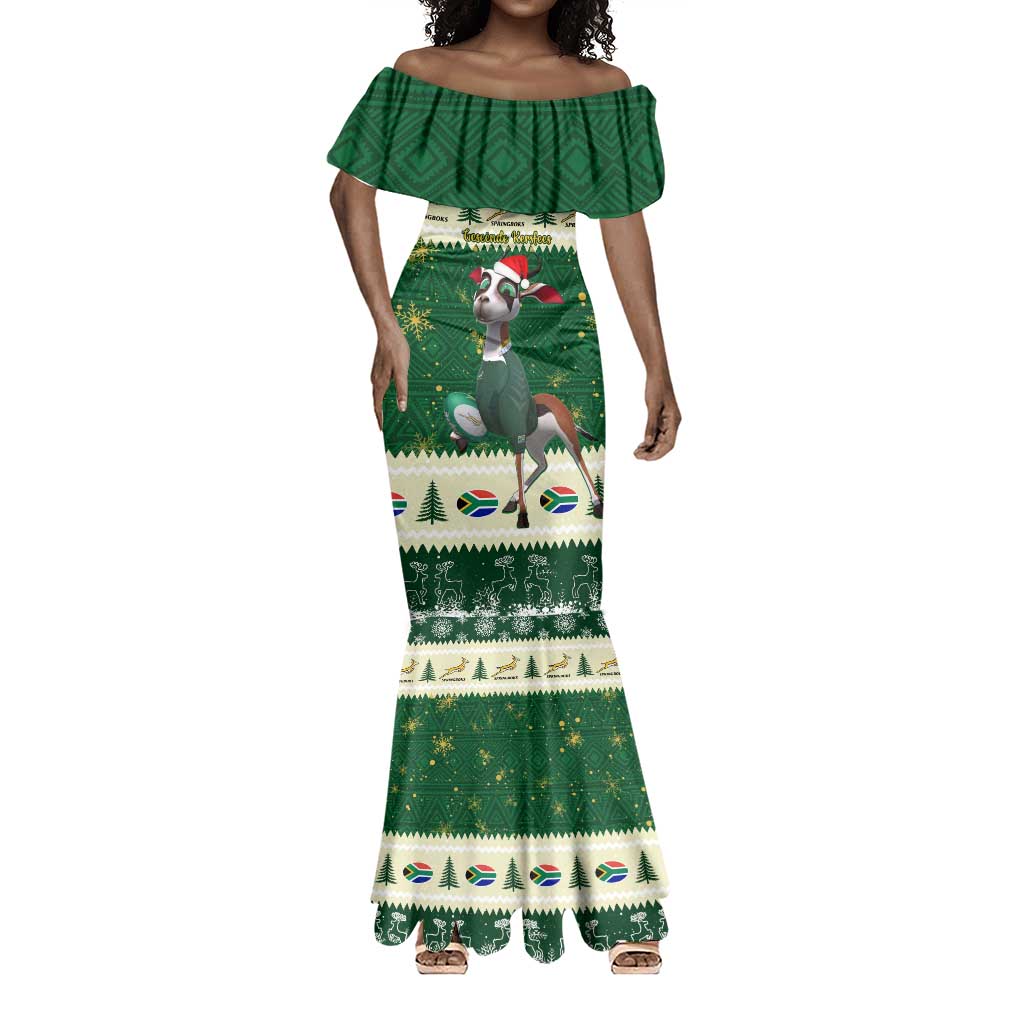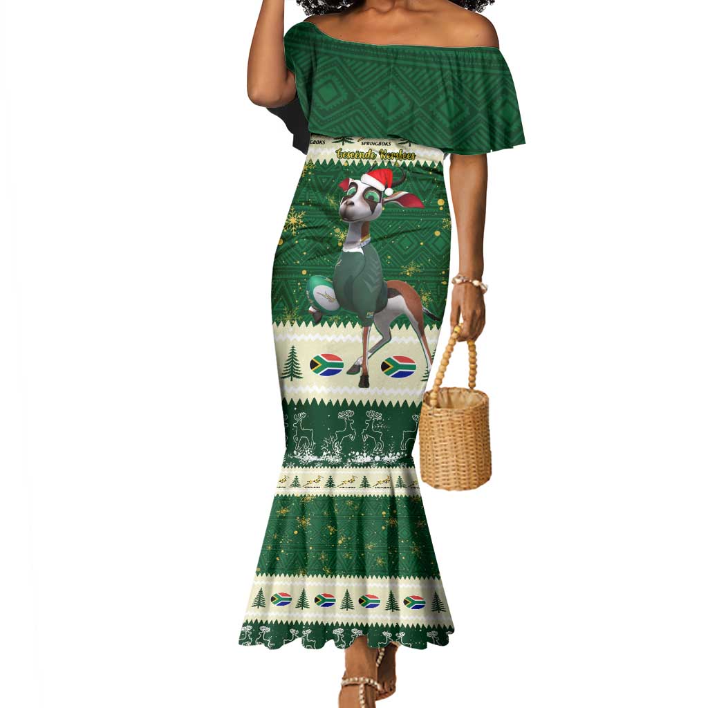 Custom South Africa Rugby Christmas Mermaid Dress Geseende Kersfees Springboks African Pattern
