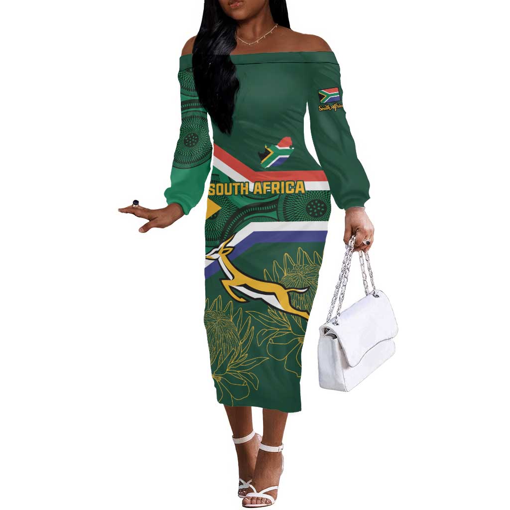 Custom South Africa Rugby Off The Shoulder Long Sleeve Dress Springboks Mascot African Pattern