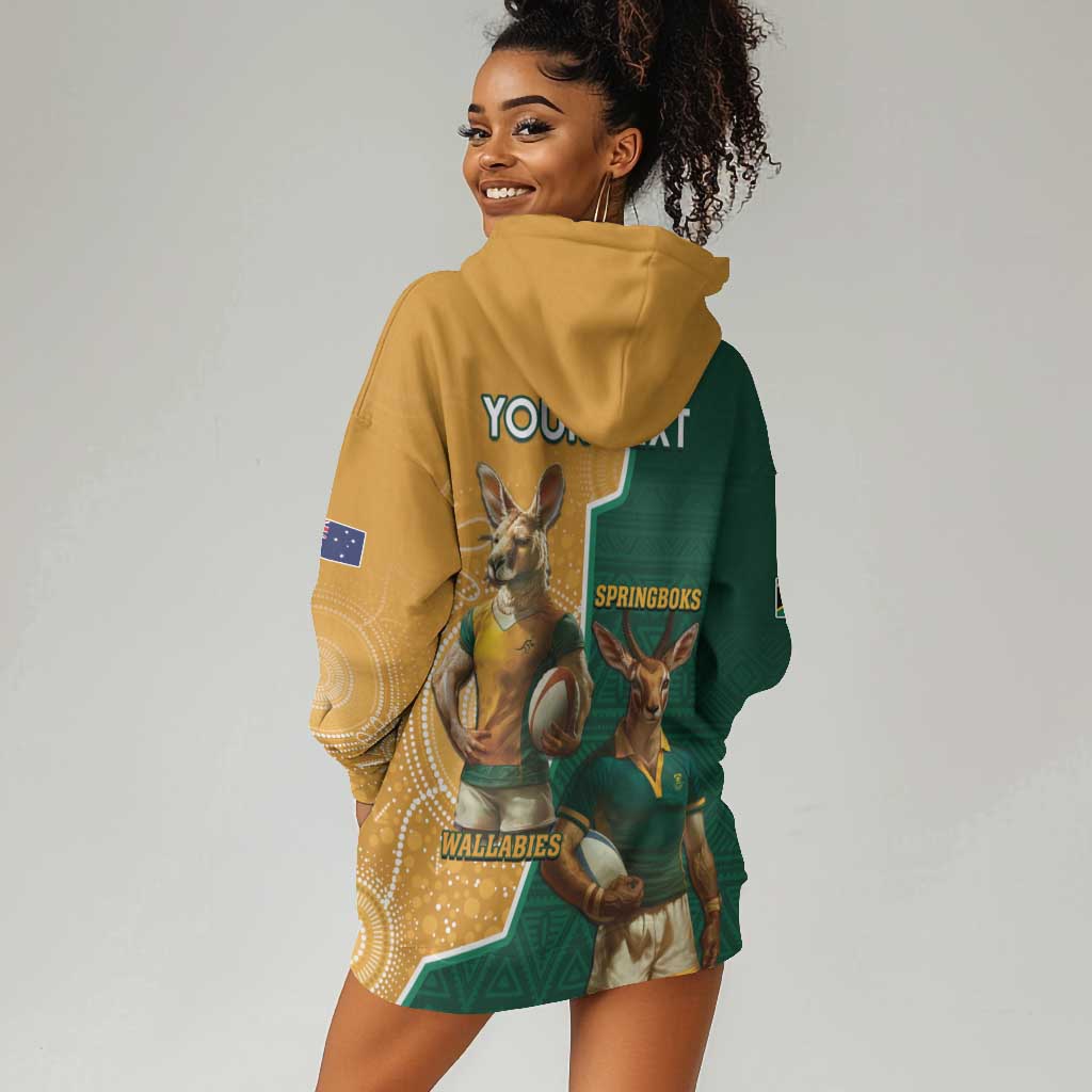Personalised South Africa And Australia Rugby Hoodie Dress 2024 Springboks Wallabies Mascots Together