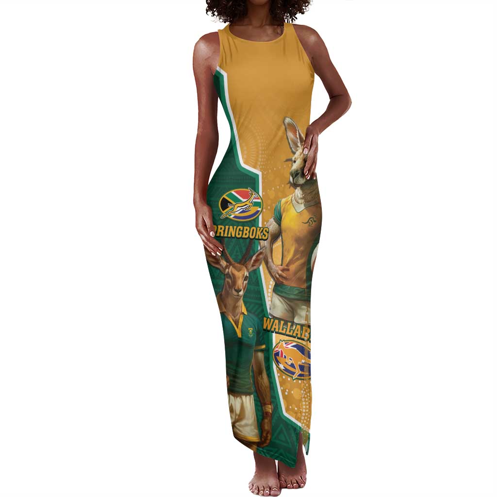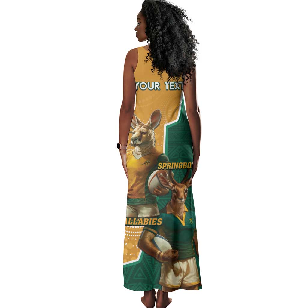 Personalised South Africa And Australia Rugby Tank Maxi Dress 2024 Springboks Wallabies Mascots Together