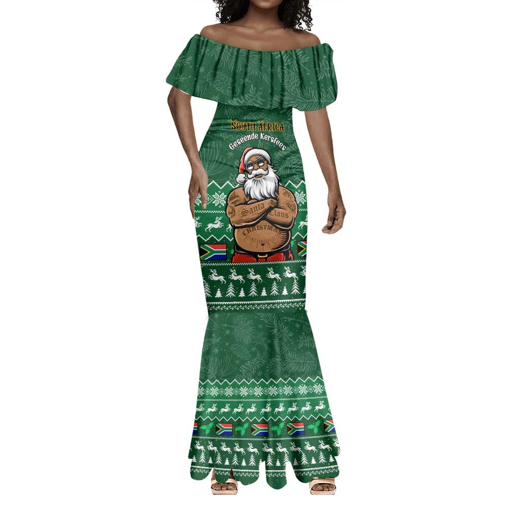 Personalised South Africa Christmas Mermaid Dress Cool Santa Claus With South African Map