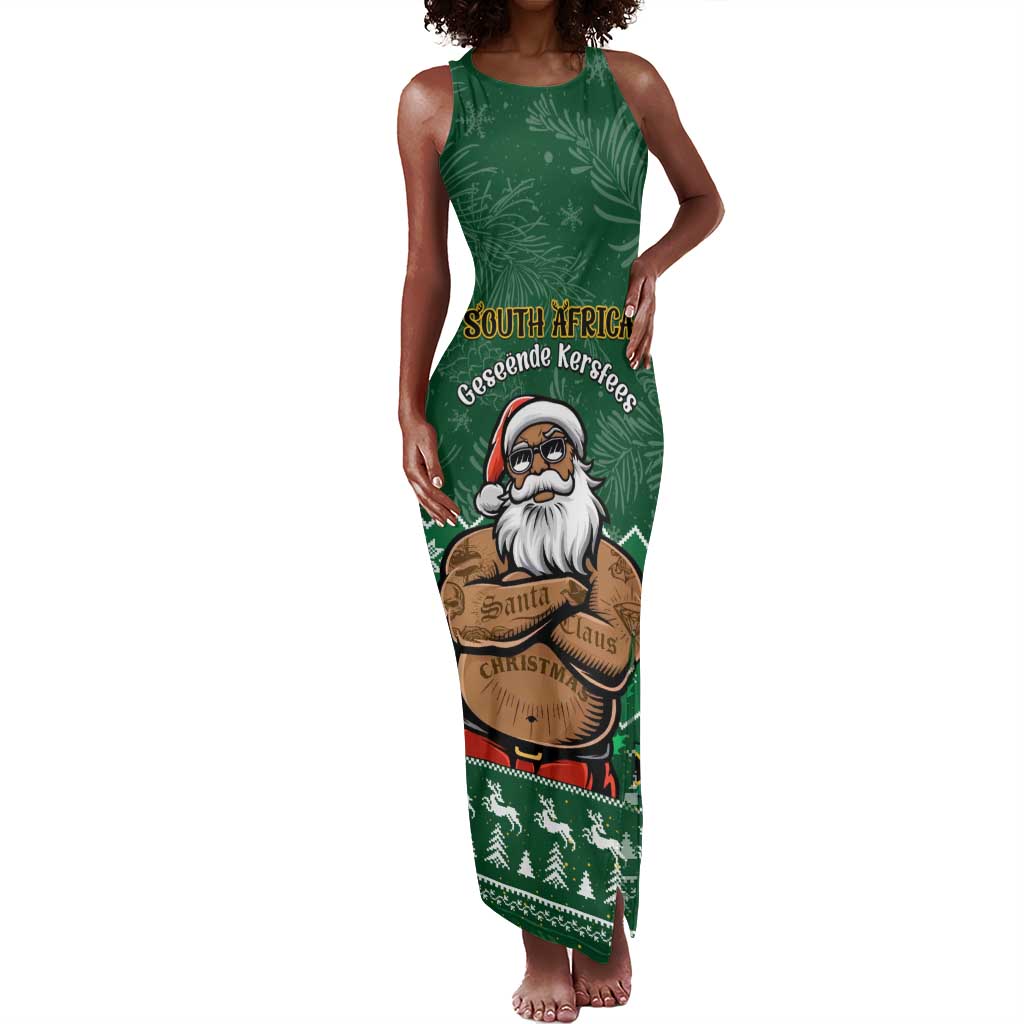 Personalised South Africa Christmas Tank Maxi Dress Cool Santa Claus With South African Map