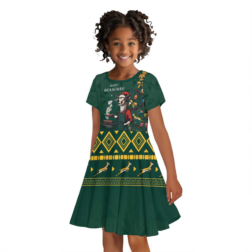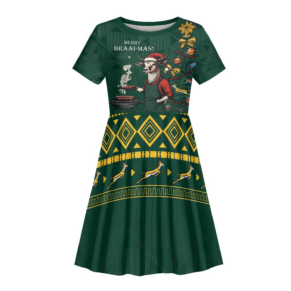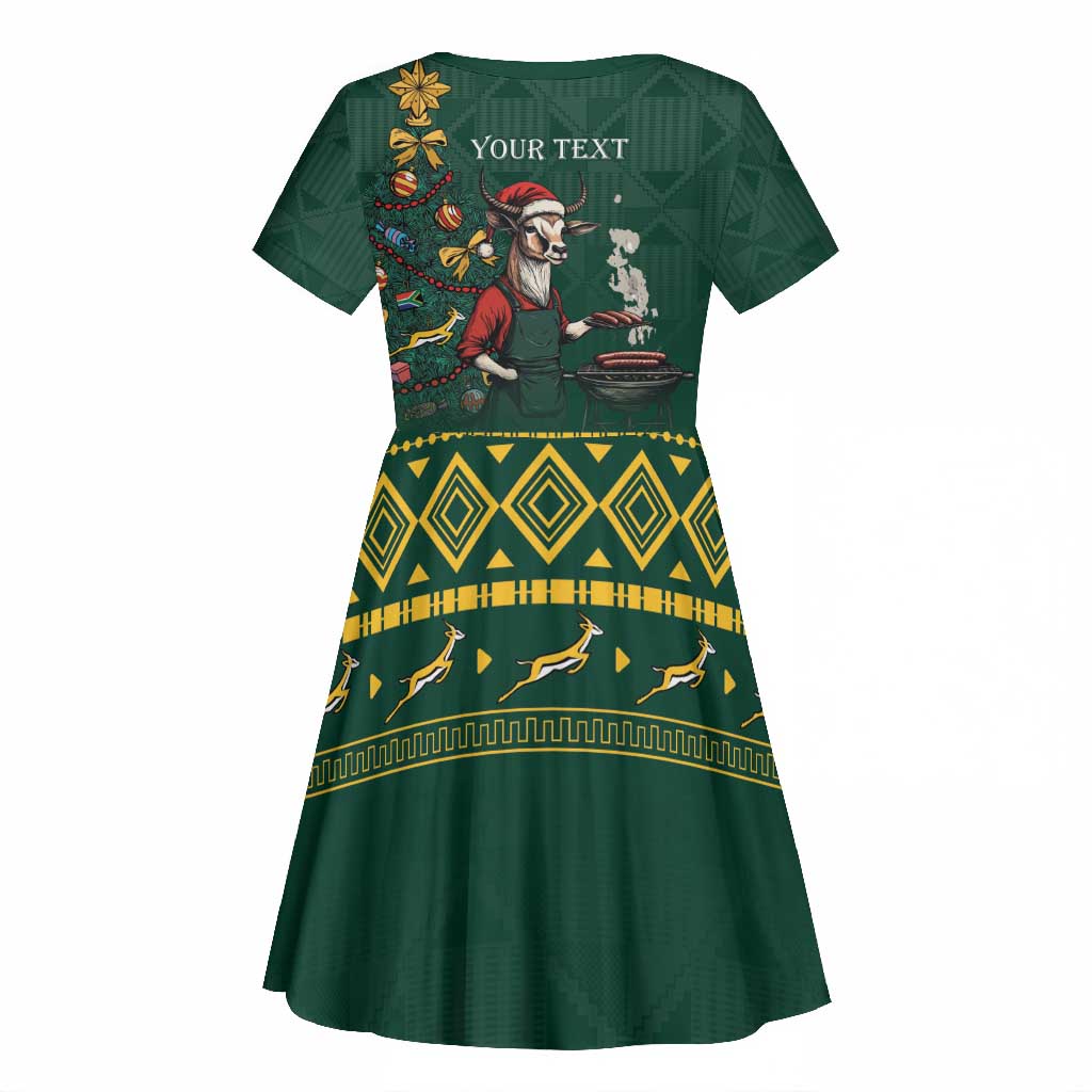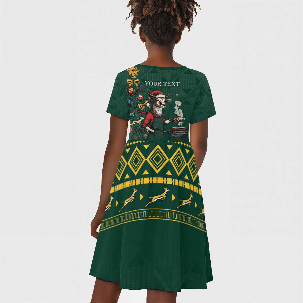 Personalised South Africa Kid Short Sleeve Dress Springbok Christmas Braai
