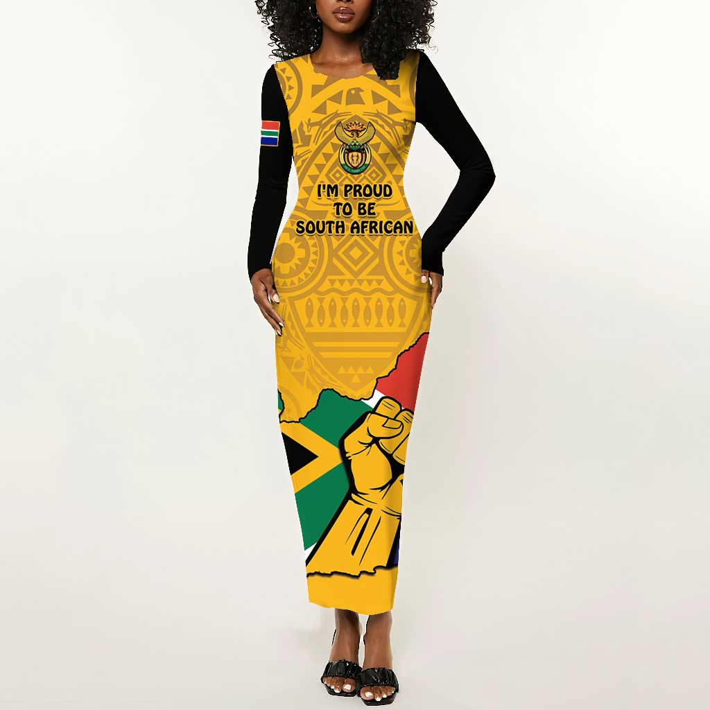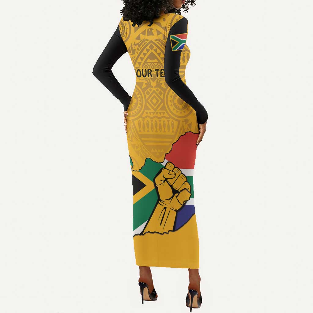 Personalised South Africa Long Sleeve Bodycon Dress African Pattern Happy Freedom Day Yellow Version