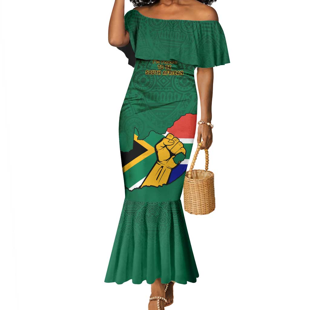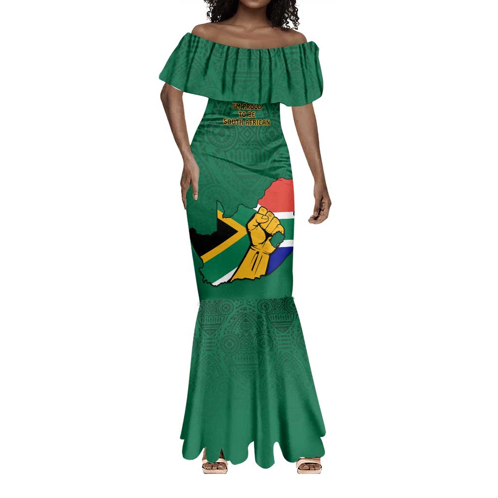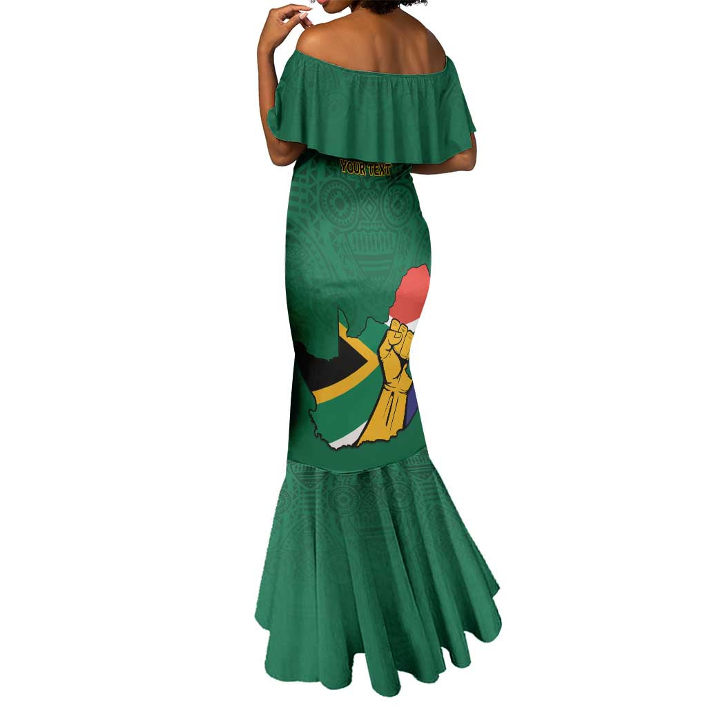 Personalised South Africa Mermaid Dress African Pattern Happy Freedom Day Green Version