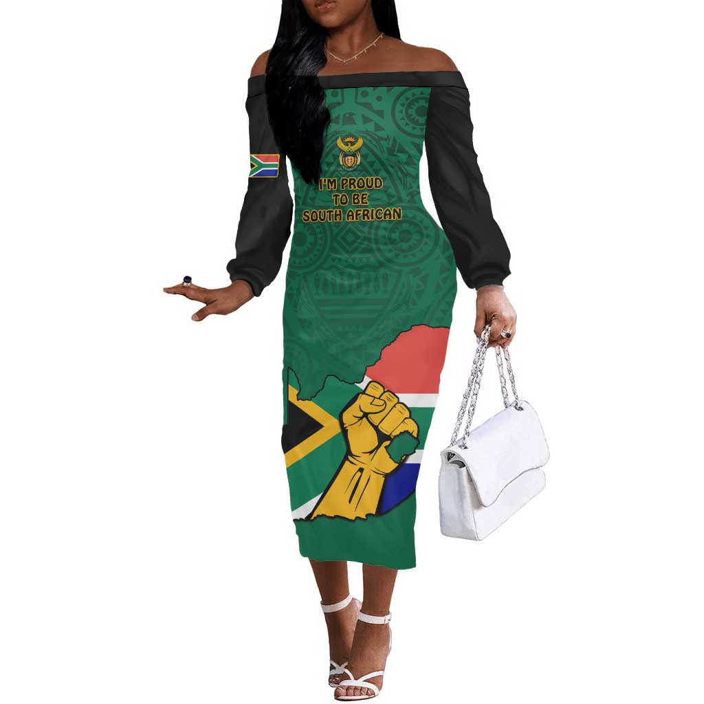 Personalised South Africa Off The Shoulder Long Sleeve Dress African Pattern Happy Freedom Day Green Version