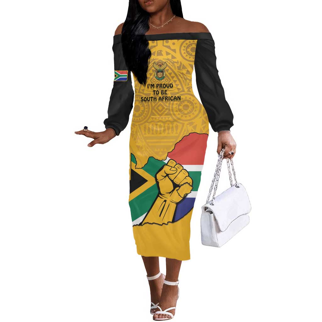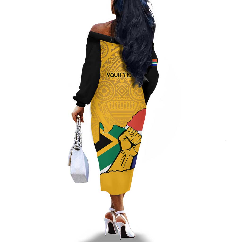 Personalised South Africa Off The Shoulder Long Sleeve Dress African Pattern Happy Freedom Day Yellow Version