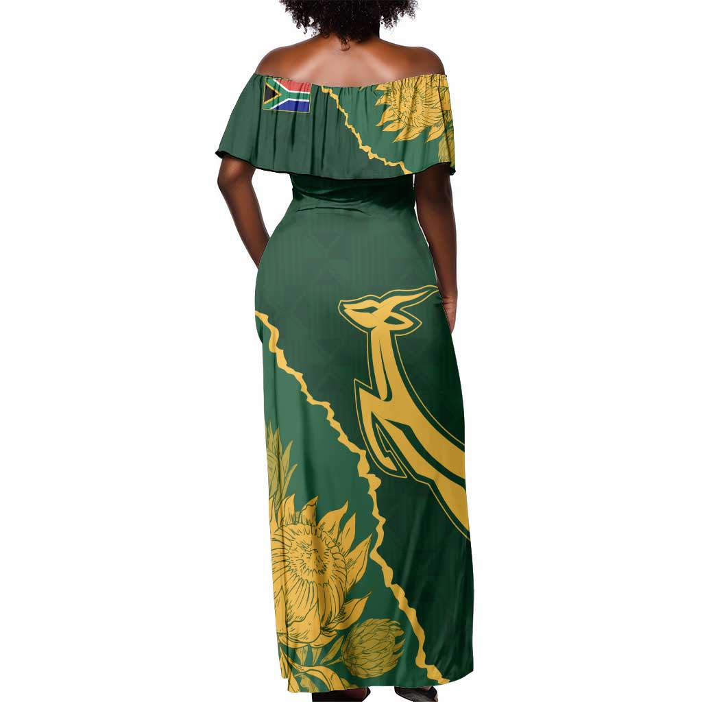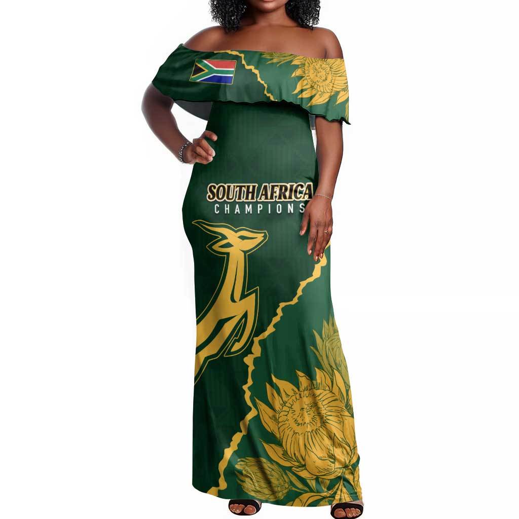 Personalised South Africa Rugby 2023 Off Shoulder Maxi Dress Bokke Champions Kente Ethnic