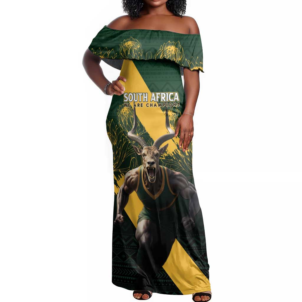 Personalised South Africa Rugby Off Shoulder Maxi Dress Proud Bokke We Are Champions
