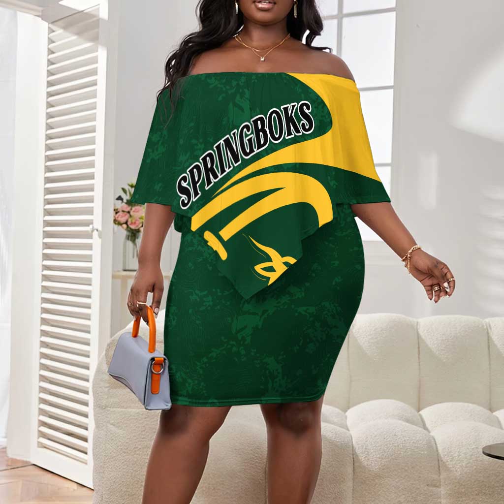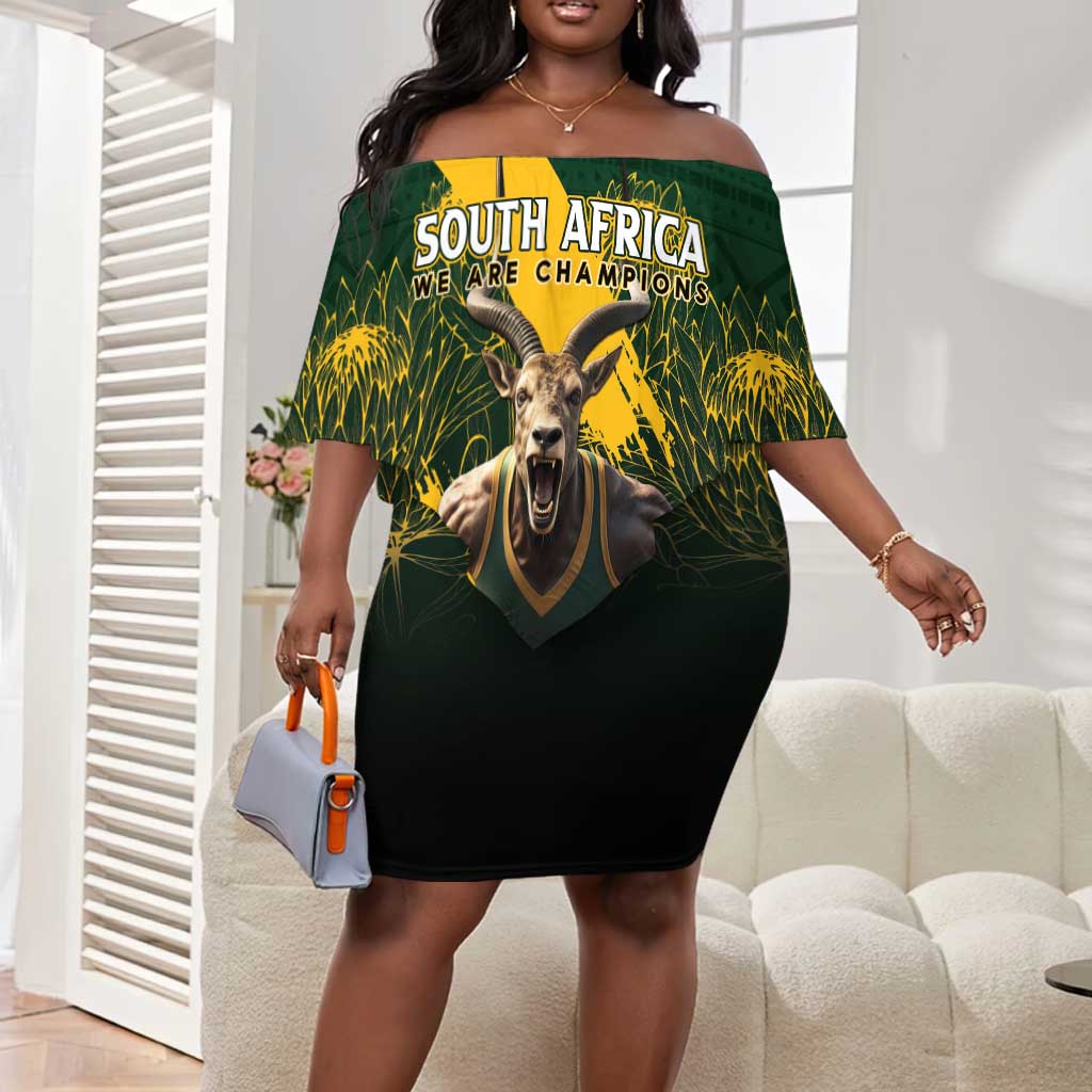 Personalised South Africa Rugby Off Shoulder Short Dress Proud Bokke We Are Champions
