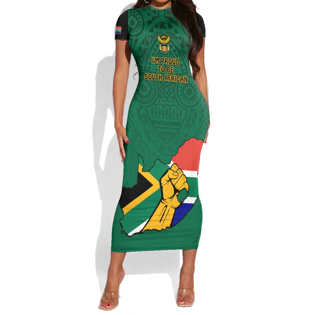 Personalised South Africa Short Sleeve Bodycon Dress African Pattern Happy Freedom Day Green Version