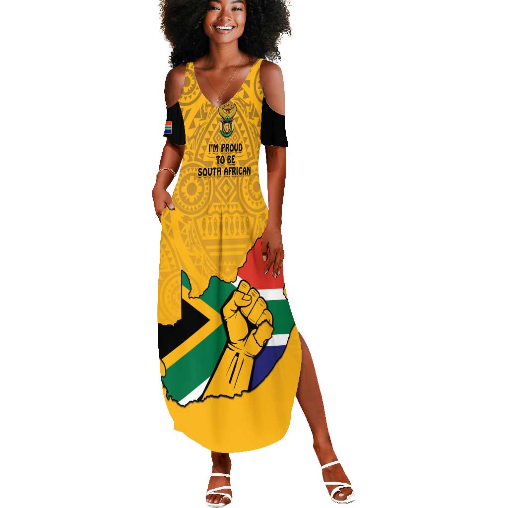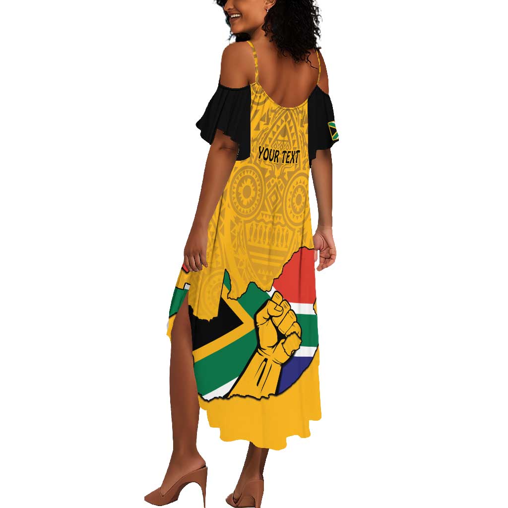 Personalised South Africa Summer Maxi Dress African Pattern Happy Freedom Day Yellow Version