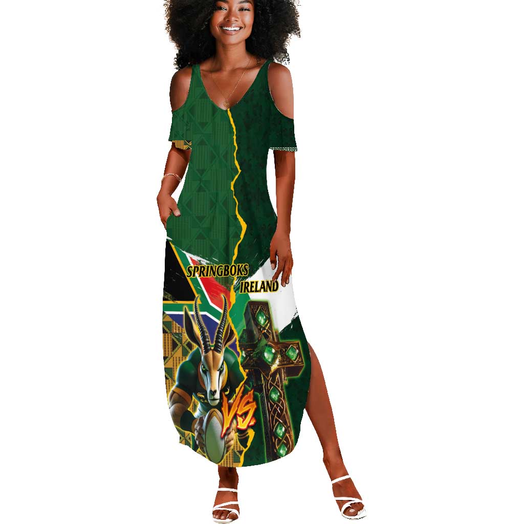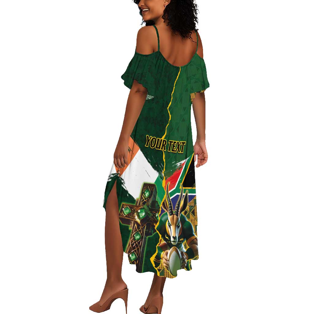 Personalized South Africa Versus Ireland Rugby Summer Maxi Dress - Springbok Mascot, Celtic Cross Design LT03