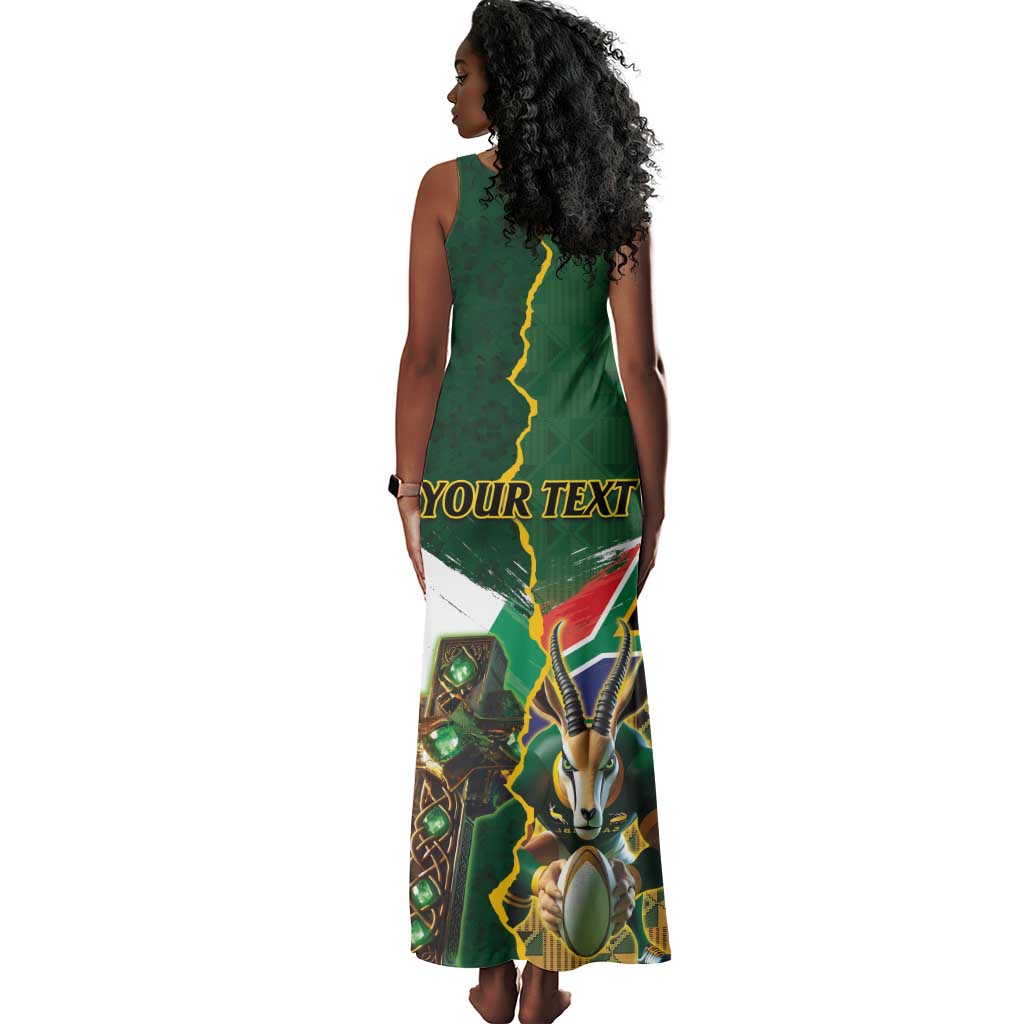 Personalized South Africa Versus Ireland Rugby Tank Maxi Dress - Springbok Mascot, Celtic Cross Design