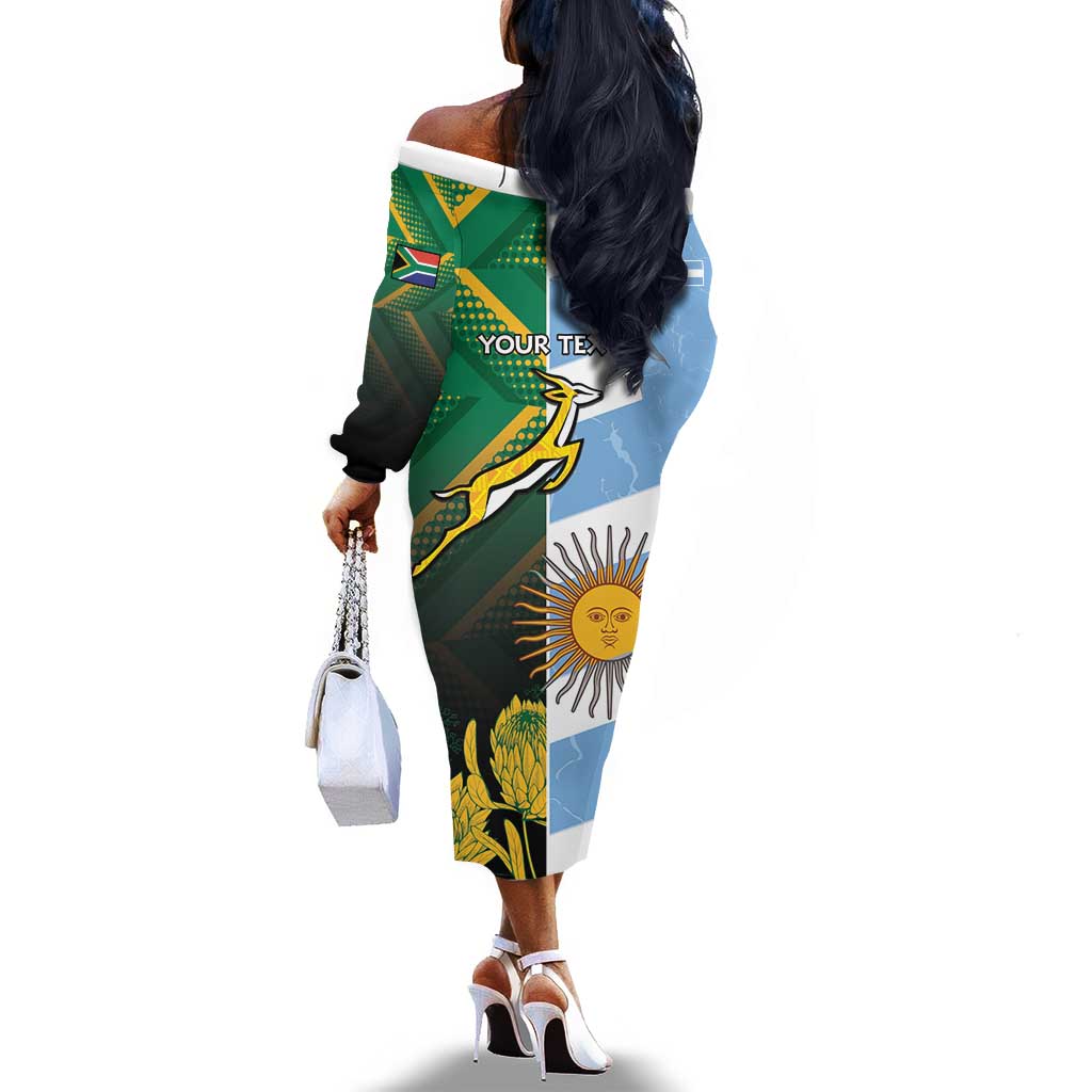 South Africa and Argentina Rugby Personalised Off The Shoulder Long Sleeve Dress Sporty Style