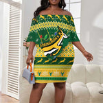 South Africa Christmas Rugby Off Shoulder Short Dress Springboks Geseende Kersfees