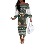 South Africa Christmas Rugby Off The Shoulder Long Sleeve Dress Springboks Mascot Mix African Pattern LT15