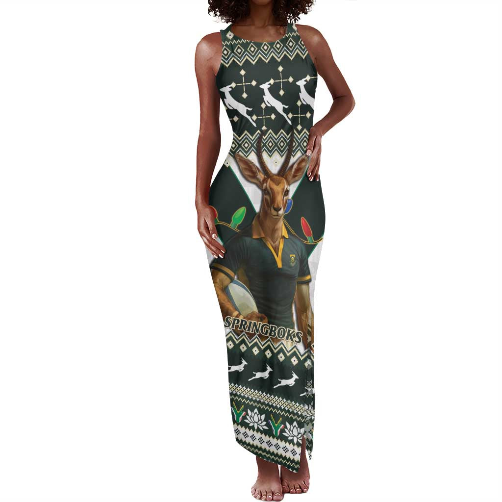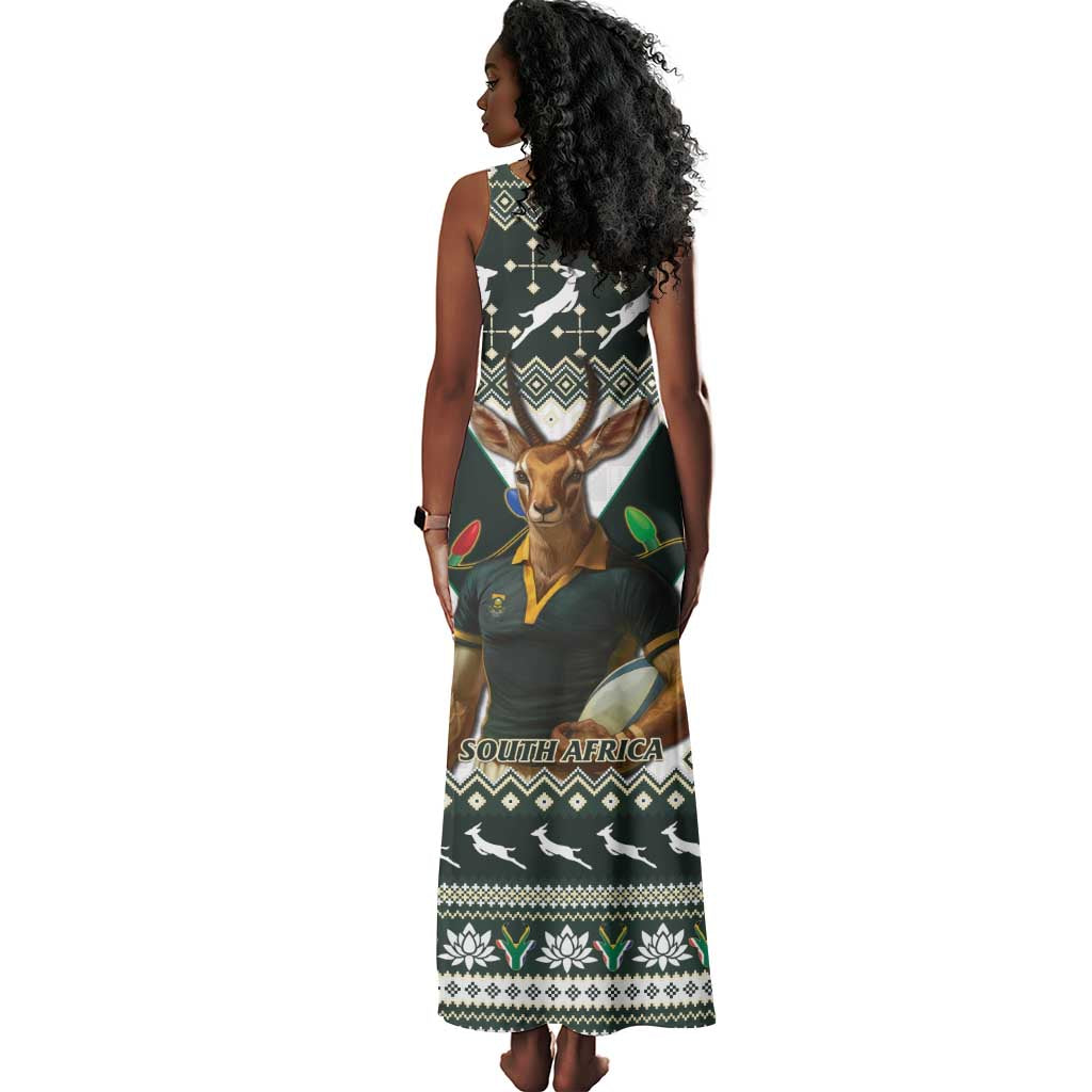 South Africa Christmas Rugby Tank Maxi Dress Springboks Mascot Mix African Pattern