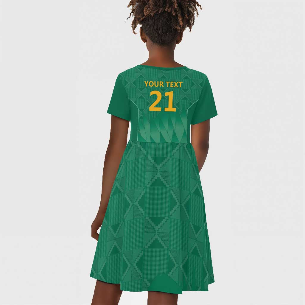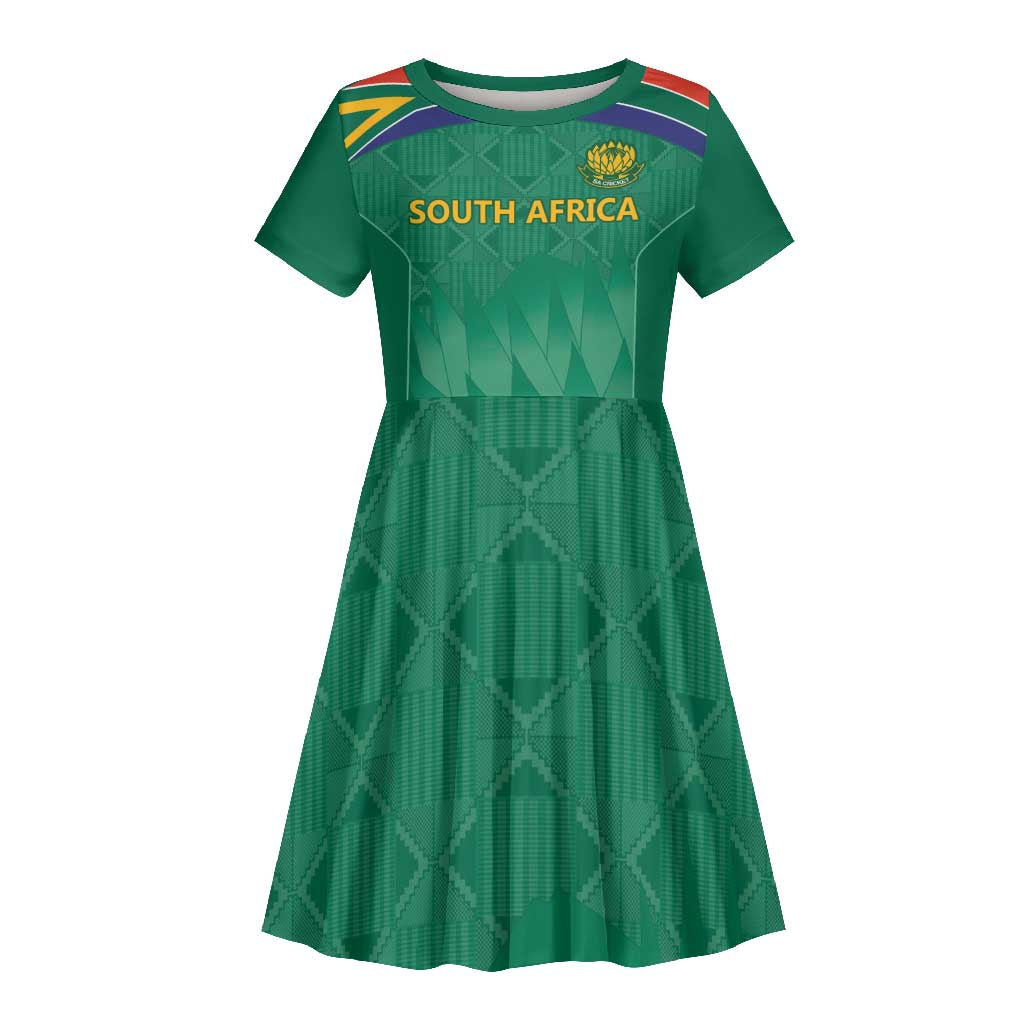 South Africa Cricket Custom Kid Short Sleeve Dress African King Proteas Green