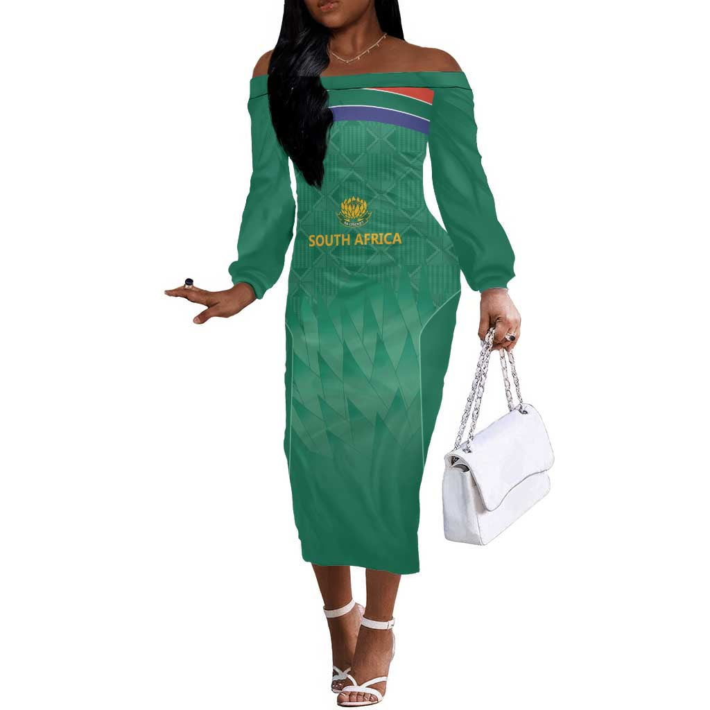 South Africa Cricket Custom Off The Shoulder Long Sleeve Dress African King Proteas Green