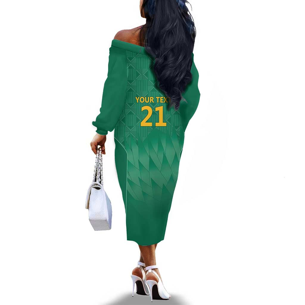 South Africa Cricket Custom Off The Shoulder Long Sleeve Dress African King Proteas Green LT9