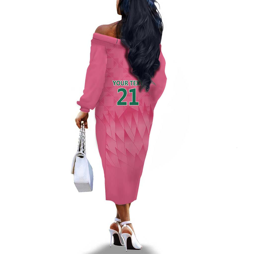 South Africa Cricket Custom Off The Shoulder Long Sleeve Dress African King Proteas Pink
