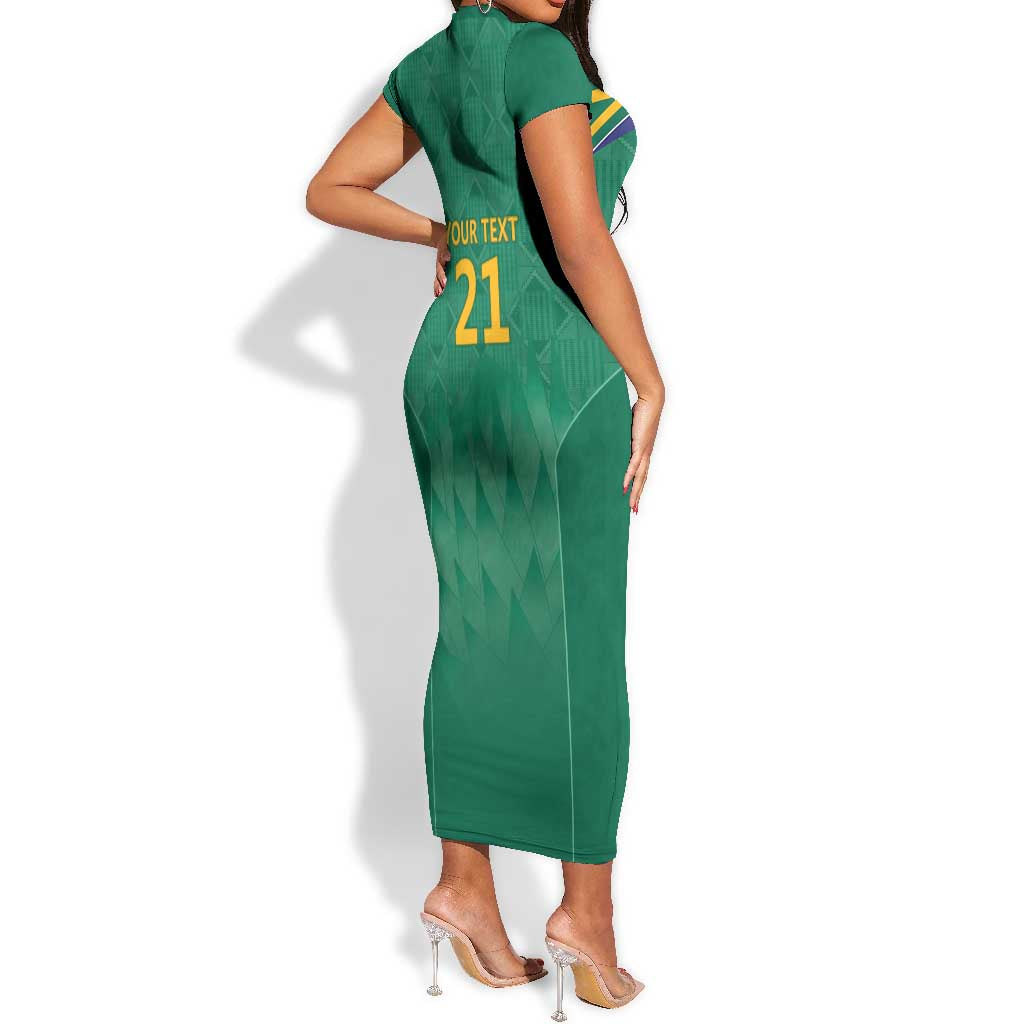 South Africa Cricket Custom Short Sleeve Bodycon Dress African King Proteas Green