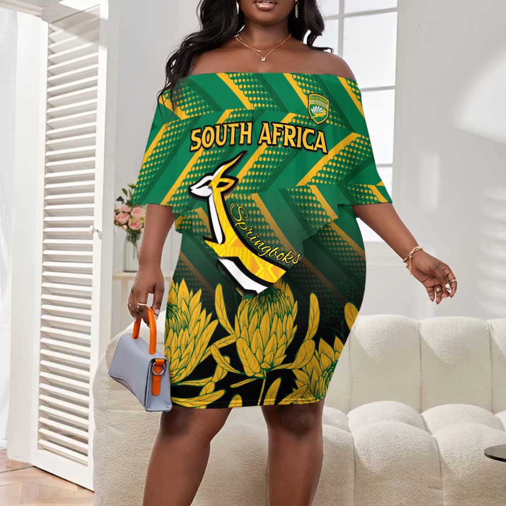 South Africa Rugby Custom Off Shoulder Short Dress Go Springboks Go