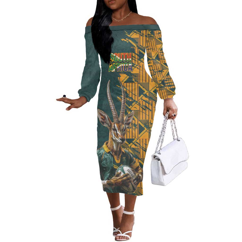South Africa Rugby Custom Off The Shoulder Long Sleeve Dress Afro Springboks Mascot Sporty Version