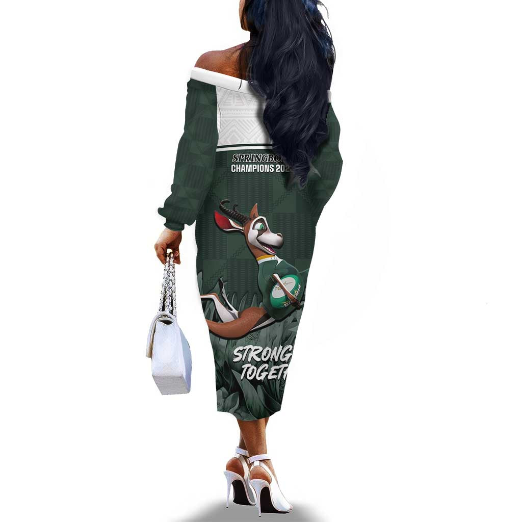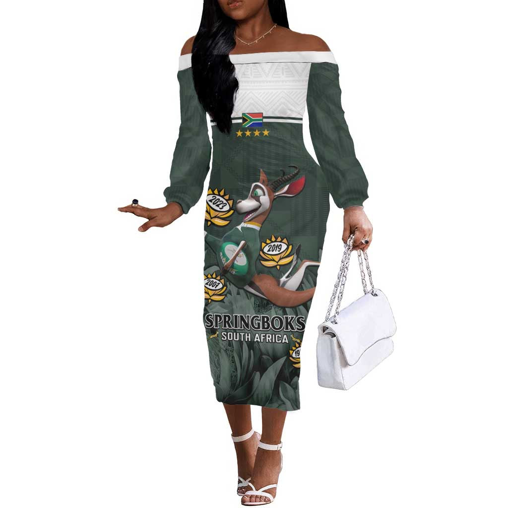 South Africa Rugby Off The Shoulder Long Sleeve Dress Springboks 4th Champions World Cup Proud Bokke