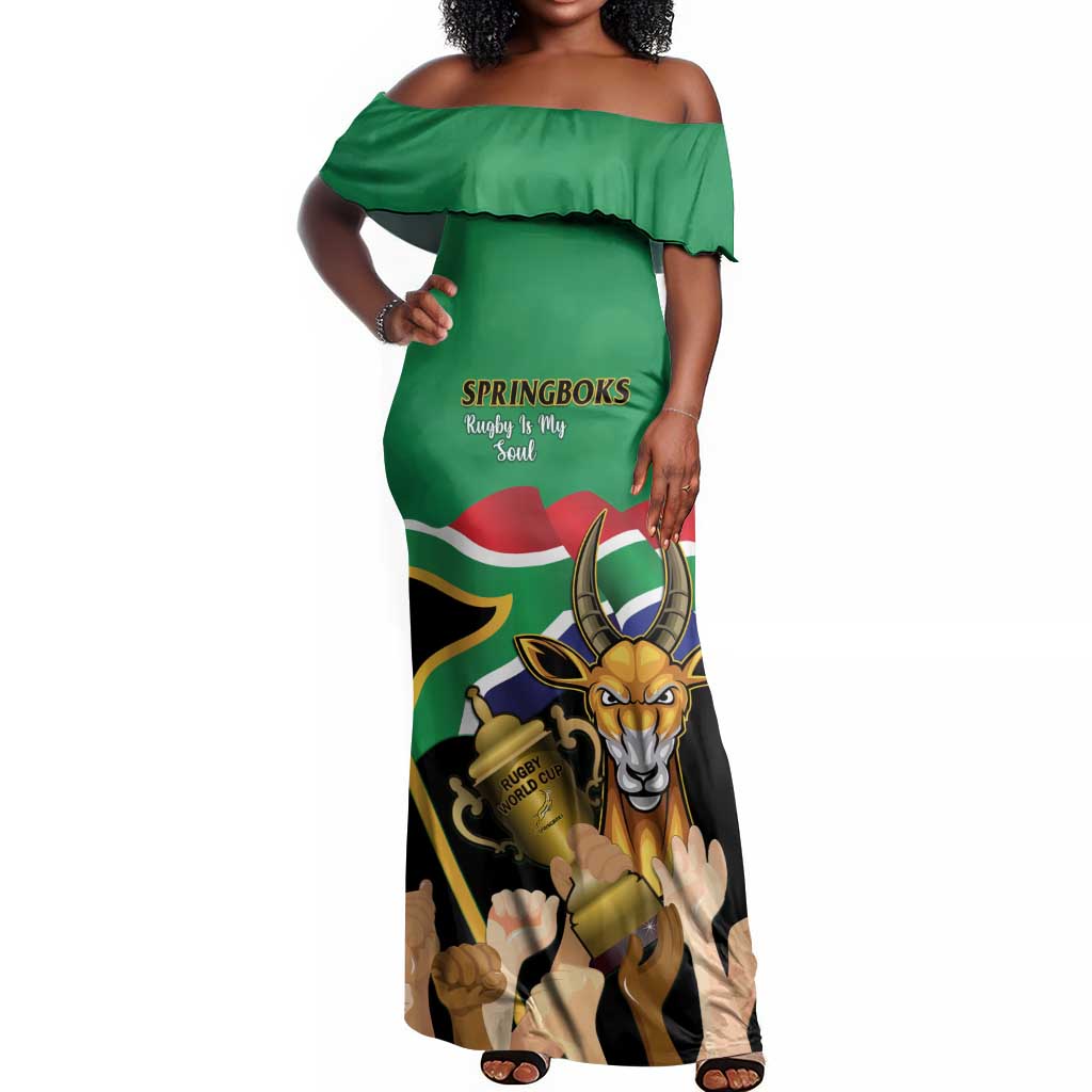 South Africa Special Holiday Off Shoulder Maxi Dress Springboks Champions Celebration Rugby Is My Soul