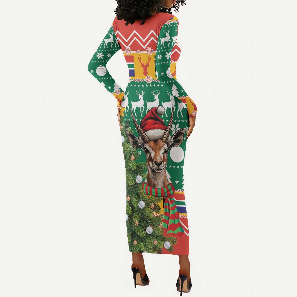 South Africa Springbok Long Sleeve Bodycon Dress Christmas Tree - Lightning Art