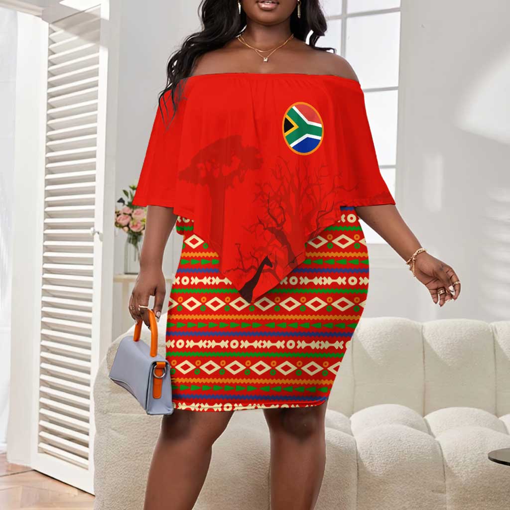 Wildlife South Africa Off Shoulder Short Dress Tribal Pattern National Flag Safari Silhouettes