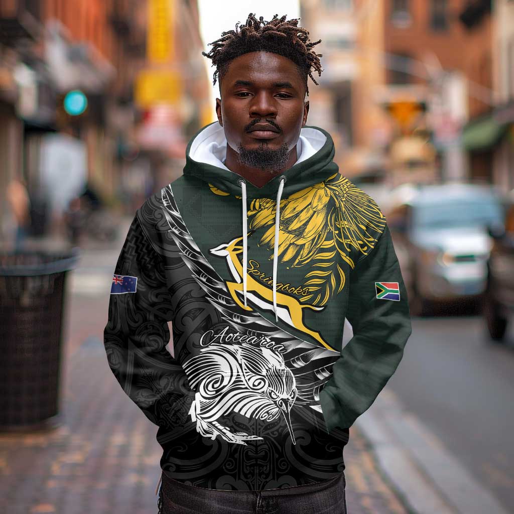 New Zealand vs South Africa Rugby Personalised Hoodie Maori Kiwi With Springboks