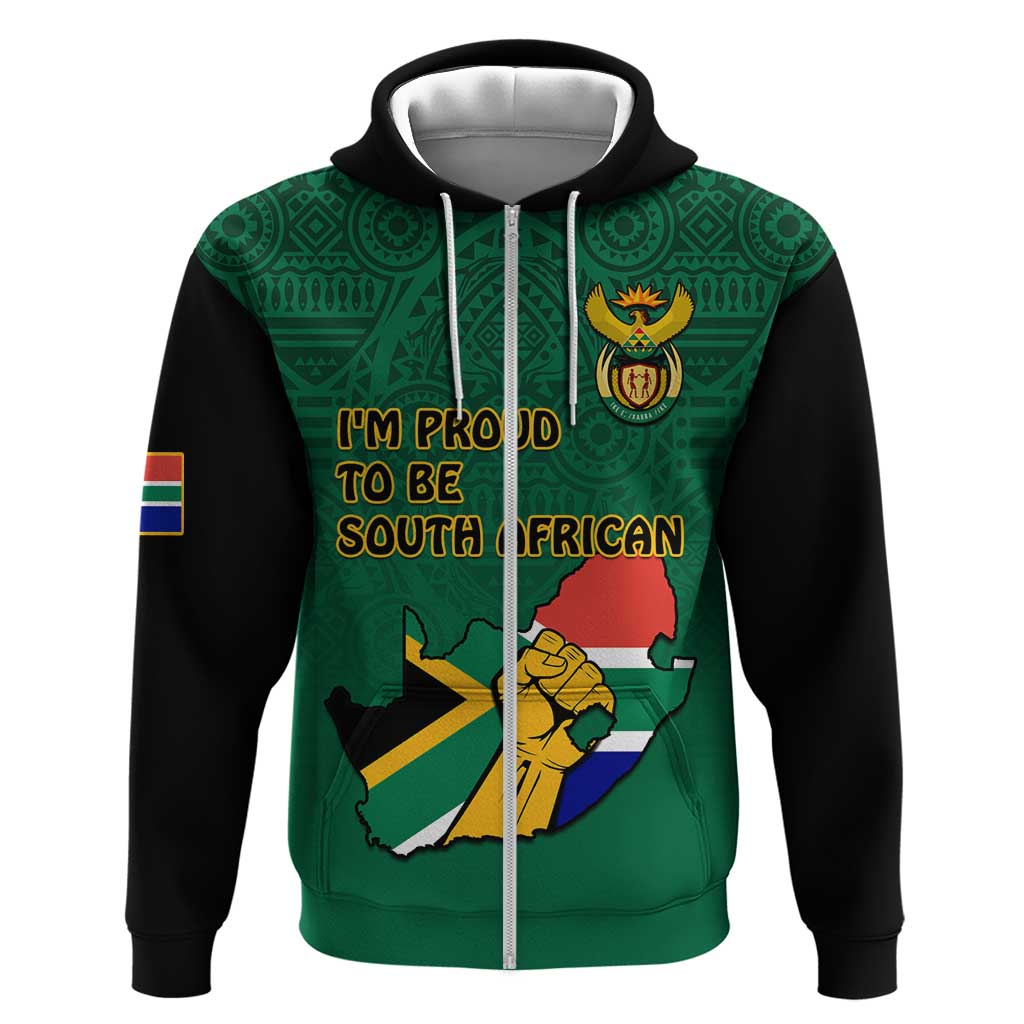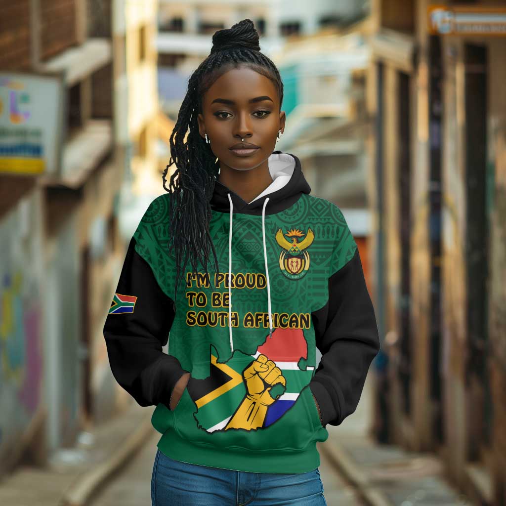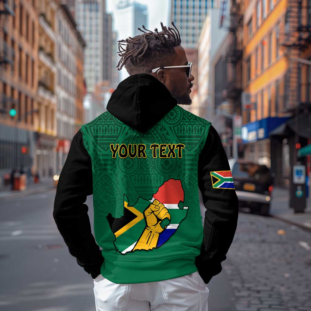 Personalised South Africa Hoodie African Pattern Happy Freedom Day Green Version