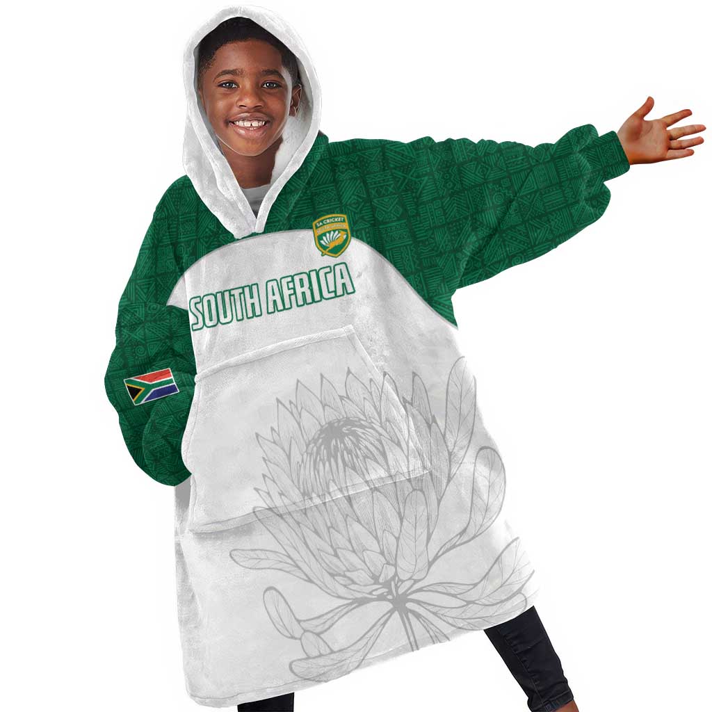 Custom Afro South Africa Cricket Kid Wearable Blanket Hoodie Go Proteas - African Pattern