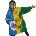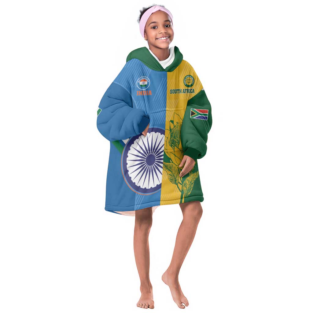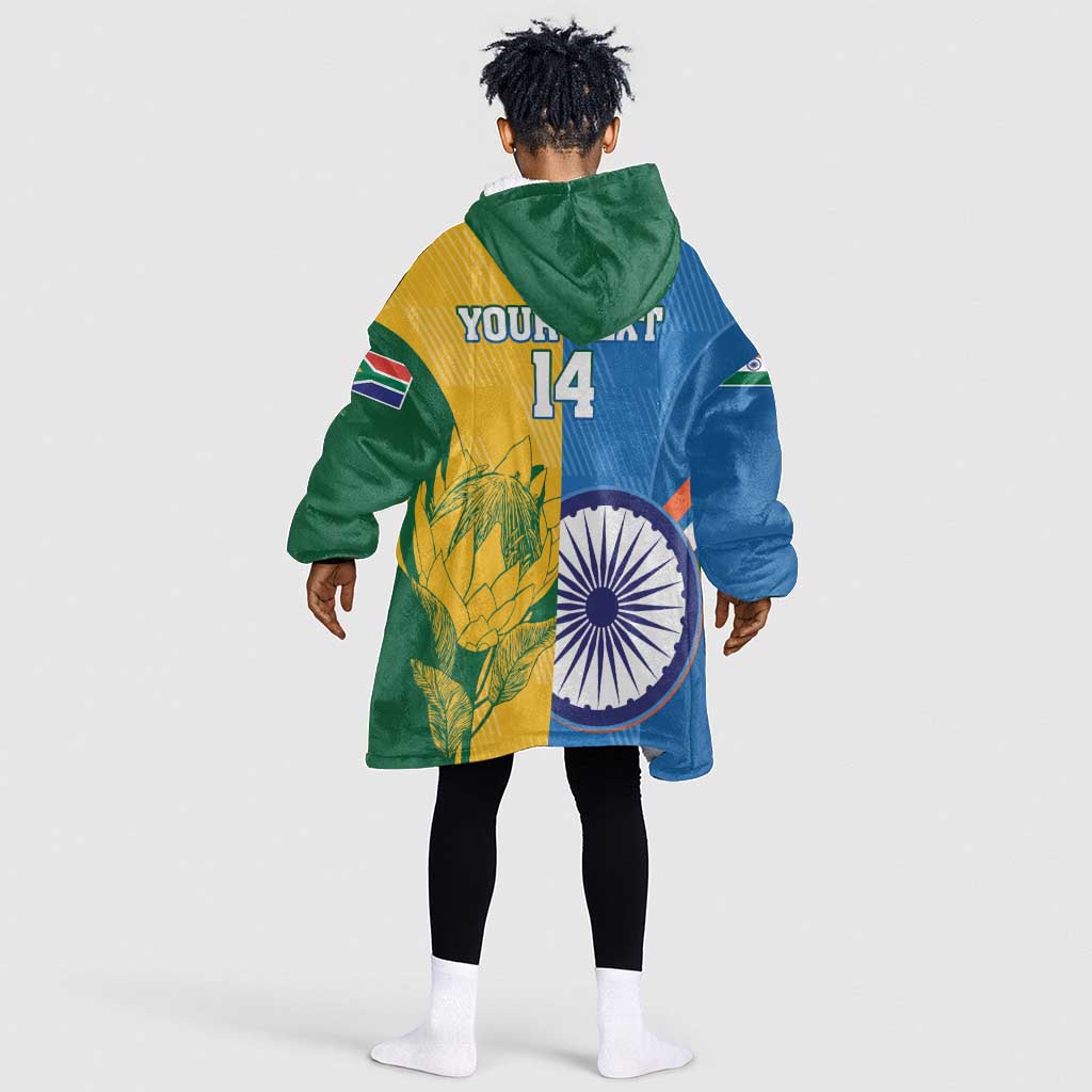 Custom India And South Africa Cricket Kid Wearable Blanket Hoodie 2024 Together Dynamic Version
